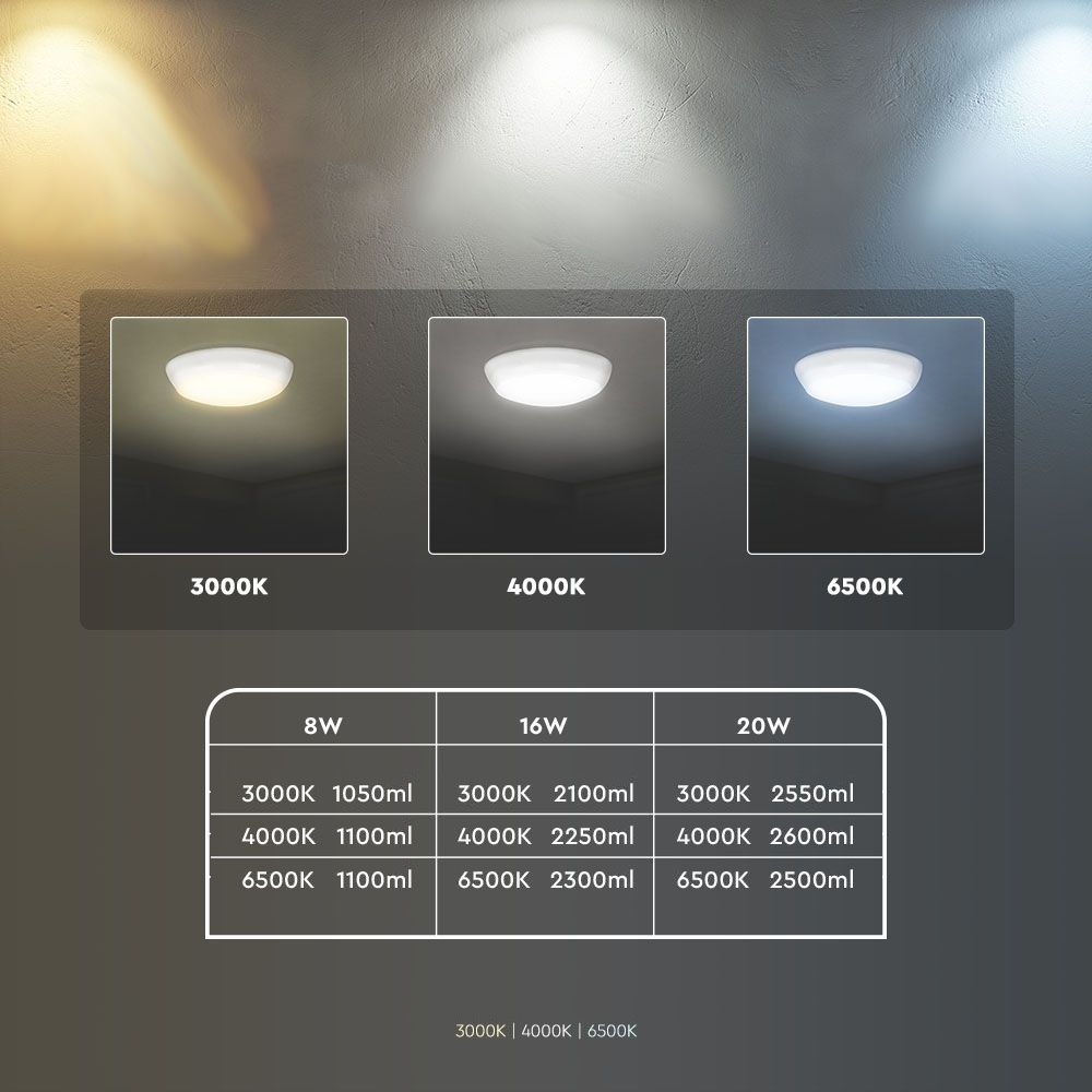 Plafon LED SKU 804-24 to nowoczesne oświetlenie o klasycznym, okrągłym kształcie, idealne do różnych przestrzeni domowych i komercyjnych. Wyposażony w wysokiej jakości Chip LED SAMSUNG, oferuje możliwość przełączania mocy między 8W, 16W i 20W oraz regulację barwy światła (ciepła, zimna, neutralna) dzięki wbudowanemu przełącznikowi. Charakteryzuje się stopniem ochrony IP65, co zapewnia odporność na pył i wodę, oraz IK08, co gwarantuje wysoką odporność na uderzenia. Dodatkowe boczne wejście kablowe ułatwia instalację. Plafon generuje strumień świetlny od 1050 lm do 2600 lm i objęty jest 5-letnią gwarancją, co świadczy o jego wysokiej jakości i niezawodności. Dodatkowo, plafon wyposażony jest w wbudowany mikrofalowy czujnik ruchu z powierzchnią detekcji 3x6m, czujnikiem światła (2-10-25 lux) oraz regulowanym czasem świecenia (5s, 30s, 90s, 3min, 20min, 30min).