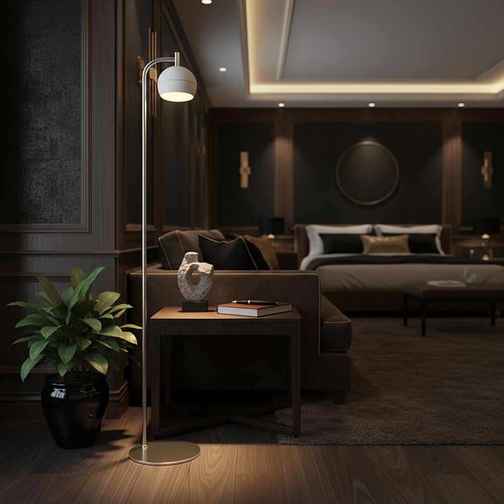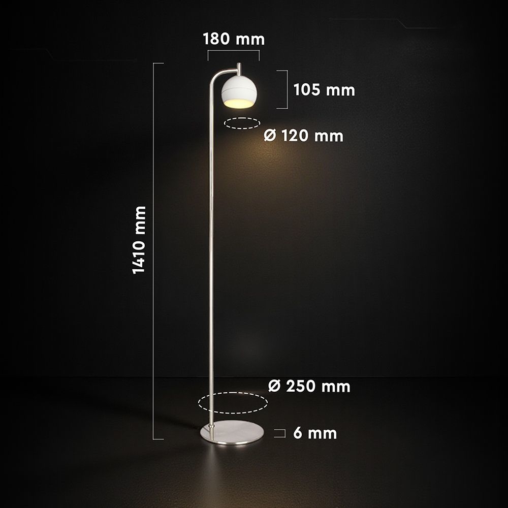 Lampa podłogowa V-TAC została zaprojektowana jako nowoczesny element oświetlenia do sypialni, salonów i eleganckich przestrzeni biurowych. Smukła forma oraz połączenie białego klosza z wykończeniem w kolorze nikiel szczotkowany nadają oprawie lekki, minimalistyczny charakter. Konstrukcja wykonana z ceramiki, metalu i akrylu jest trwała i prezentuje się estetycznie w nowoczesnych aranżacjach. Wbudowany moduł LED o mocy 10W generuje 1200 lumenów i zapewnia ciepłą barwę światła 3000K. Szeroki kąt świecenia 280 stopni umożliwia miękkie i równomierne oświetlenie pomieszczenia. Lampa przeznaczona do użytku wewnętrznego sprawdzi się zarówno jako oświetlenie dekoracyjne jak i funkcjonalne.