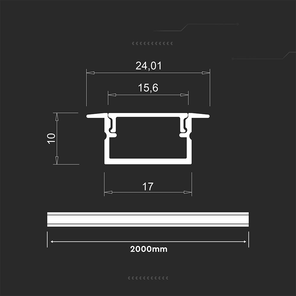 Profil aluminiowy anodowany wpuszczany V-TAC 2mb klosz mleczny 2000x17x10mm VT-71007 5 lata gwarancji