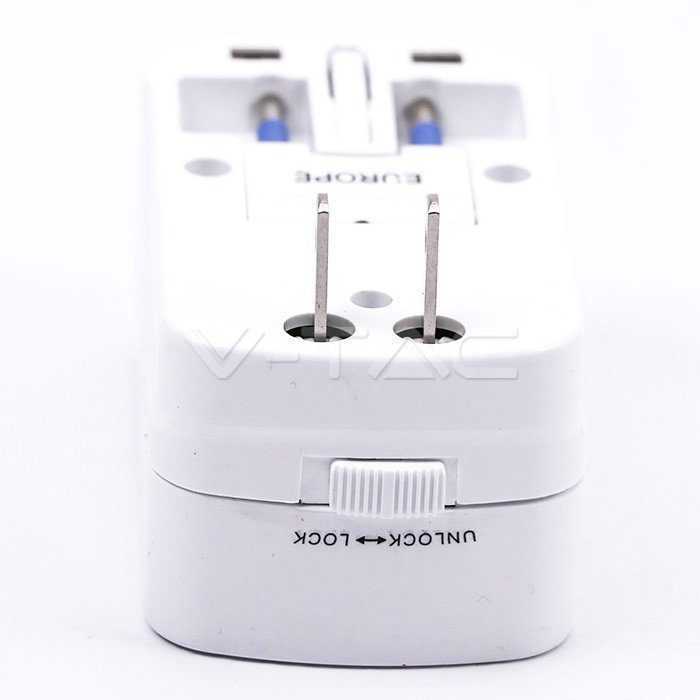 Uniwersalny adapter podróżny z zabezpieczeniem 2xUSB 2A V-TAC
