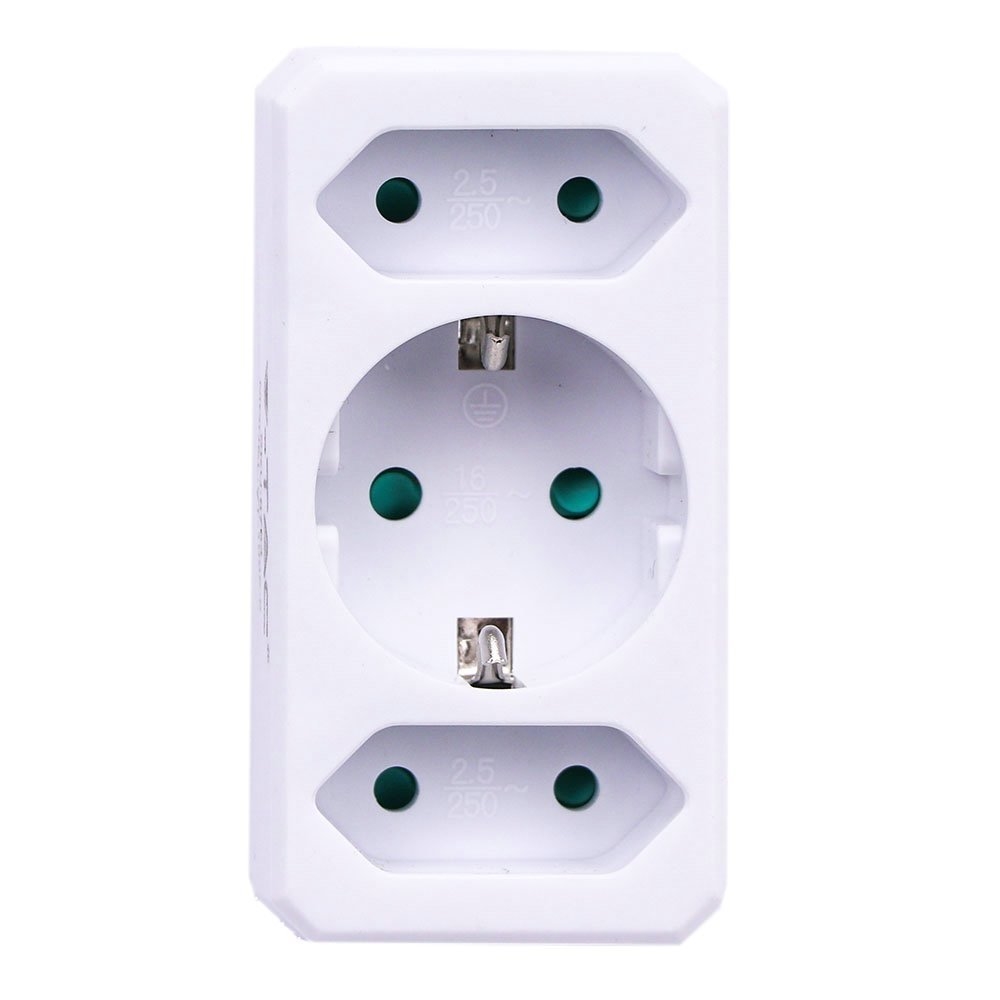 Rozgałęźnik 3x (2+1) 2x euro 10A 1 x 10/16A 250V V-TAC biały VT-1005