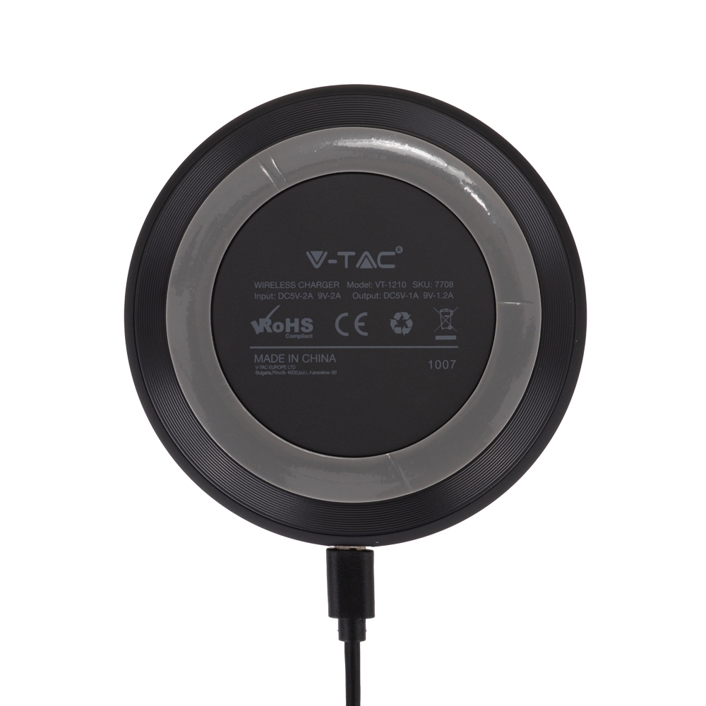Ładowarka indukcyjna bezprzewodowa 5A 10W czarna okrągła V-TAC VT-1210