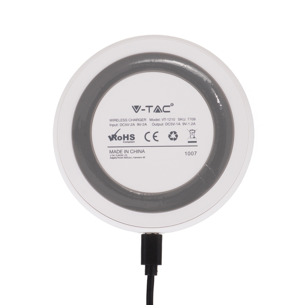 Ładowarka indukcyjna bezprzewodowa 5A 10W biała okrągła V-TAC VT-1210