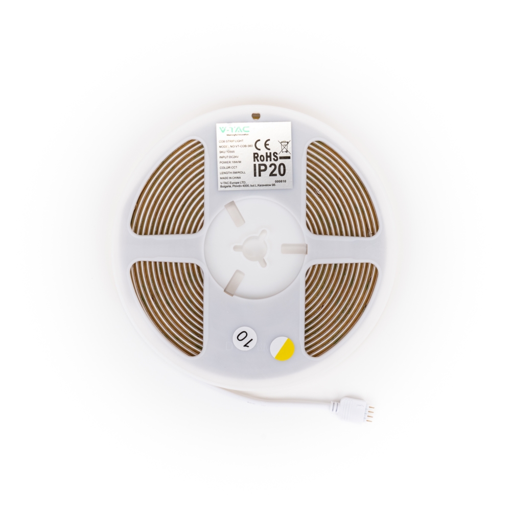 Taśma LED V-TAC bezpunktowa COB CCT 3w1 560LED 24V 18W/m CRI90 VT-COB 2700K-6500K