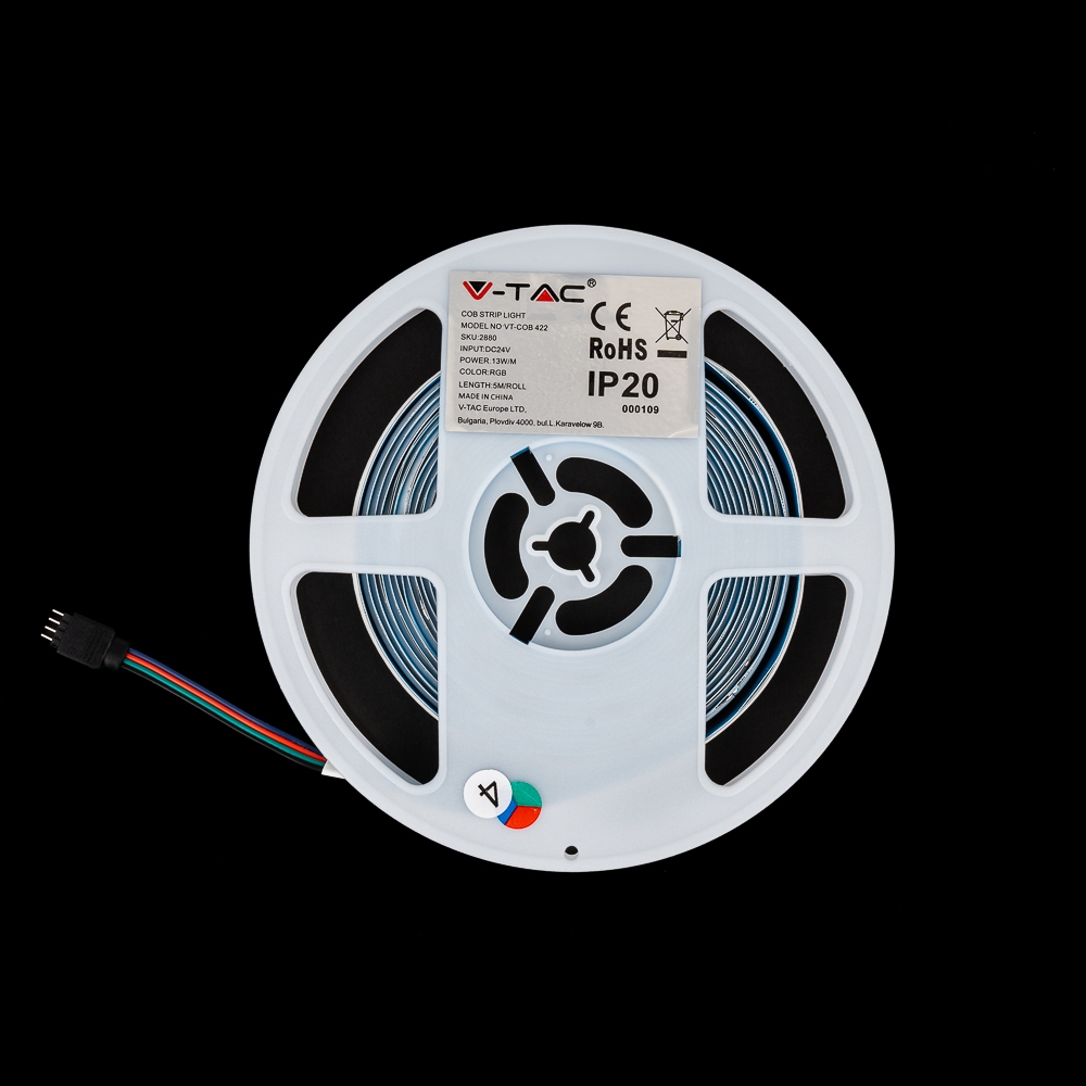 Taśma LED V-TAC bezpunktowa COB 420LED 24V IP20 5mb 13W/m VT-COB RGB
