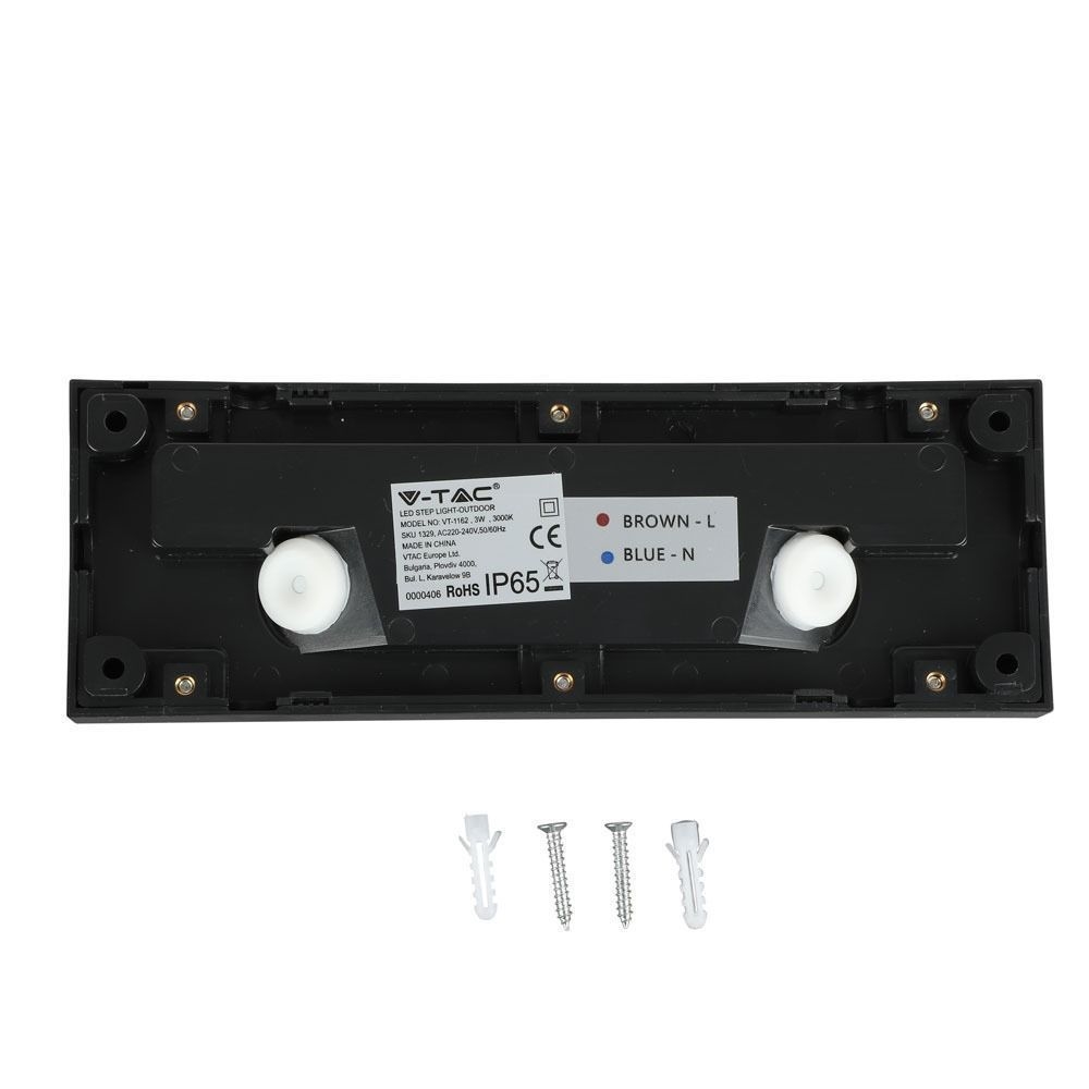 Oprawa schodowa 3W LED V-TAC czarna prostokąt 230V IP65 VT-1162 4000K 110lm