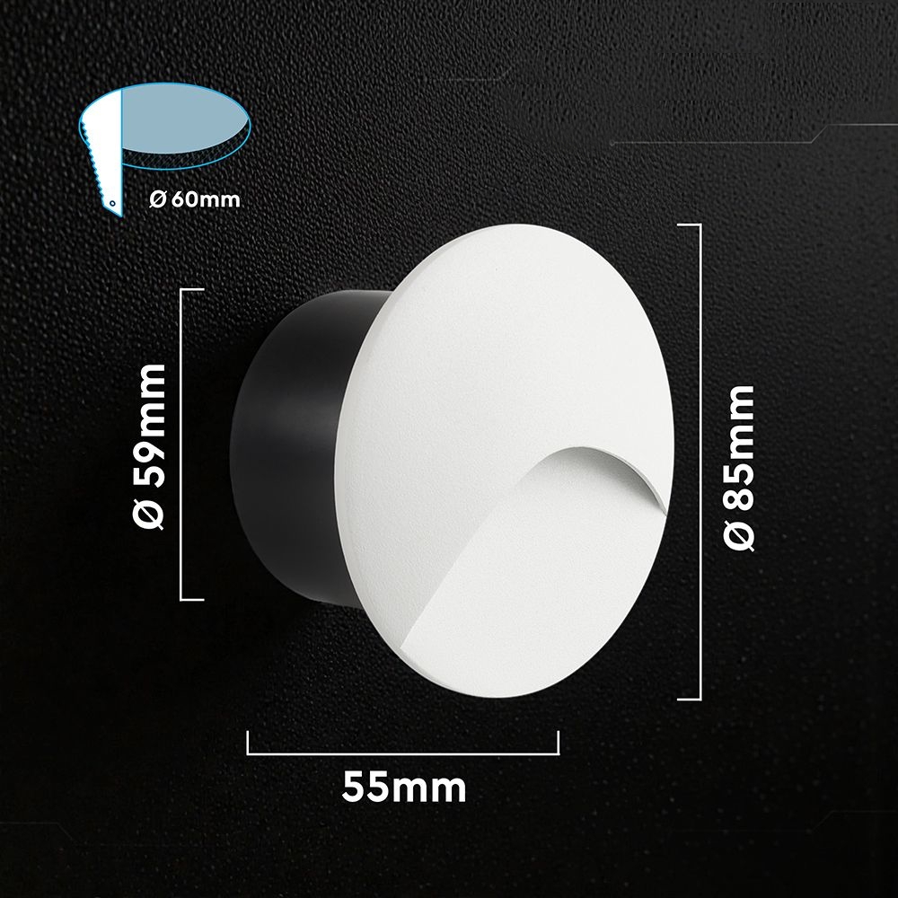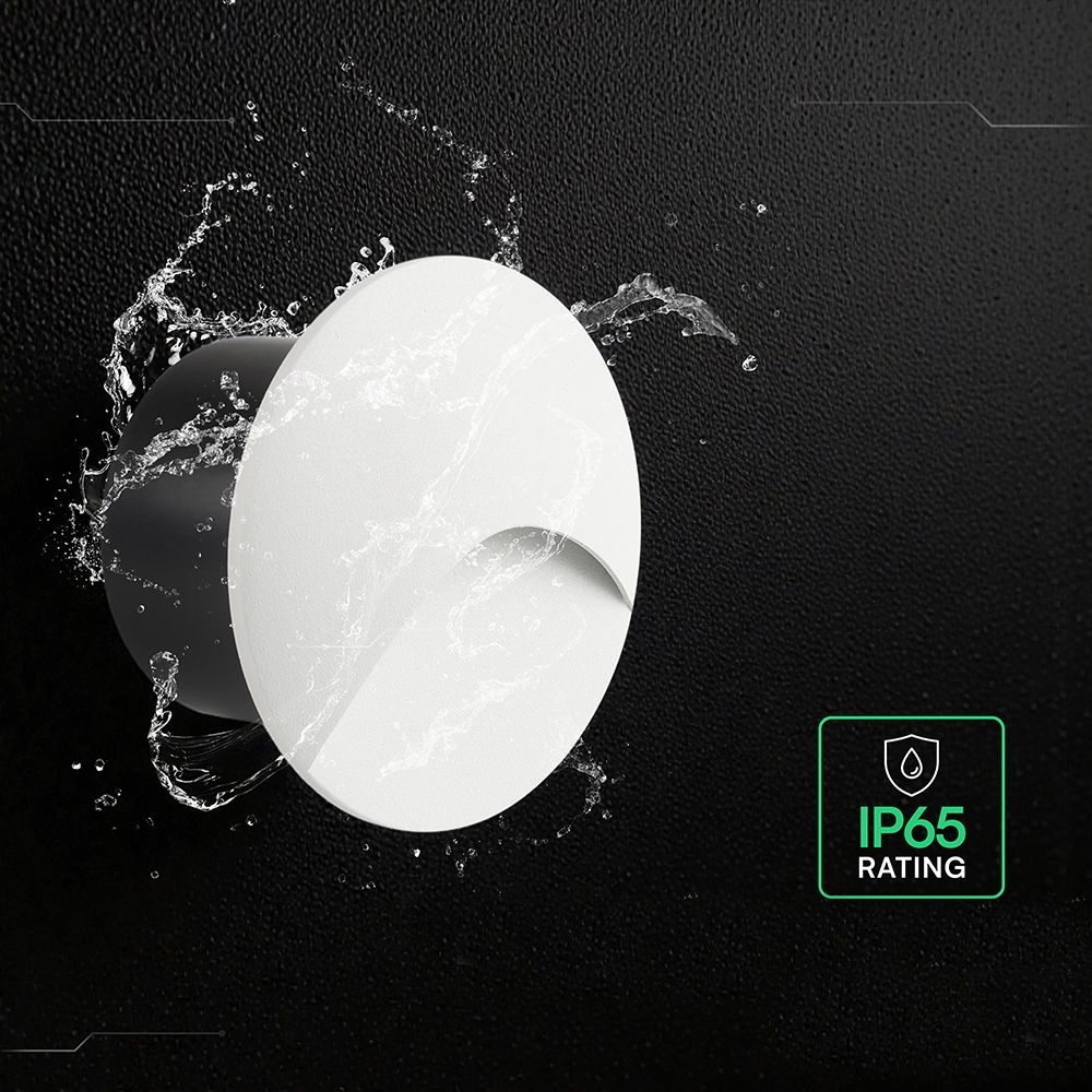Oprawa schodowa aluminiowa 3W LED V-TAC okrągła biała 230V IP65 VT-44002RD 3000K 230lm