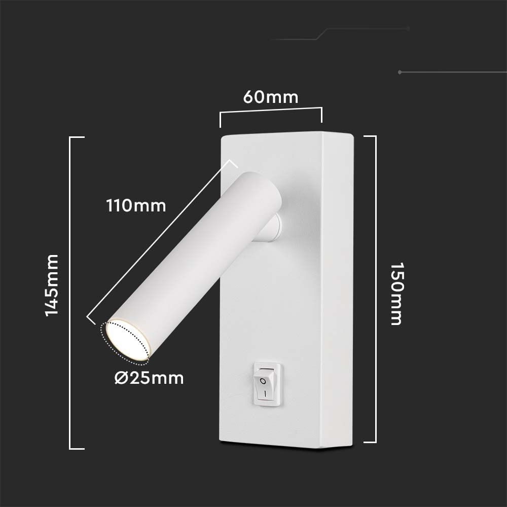 Oprawa LED V-TAC 2W kinkiet hotel łóżko włącznik biały VT-402 3000K 150lm