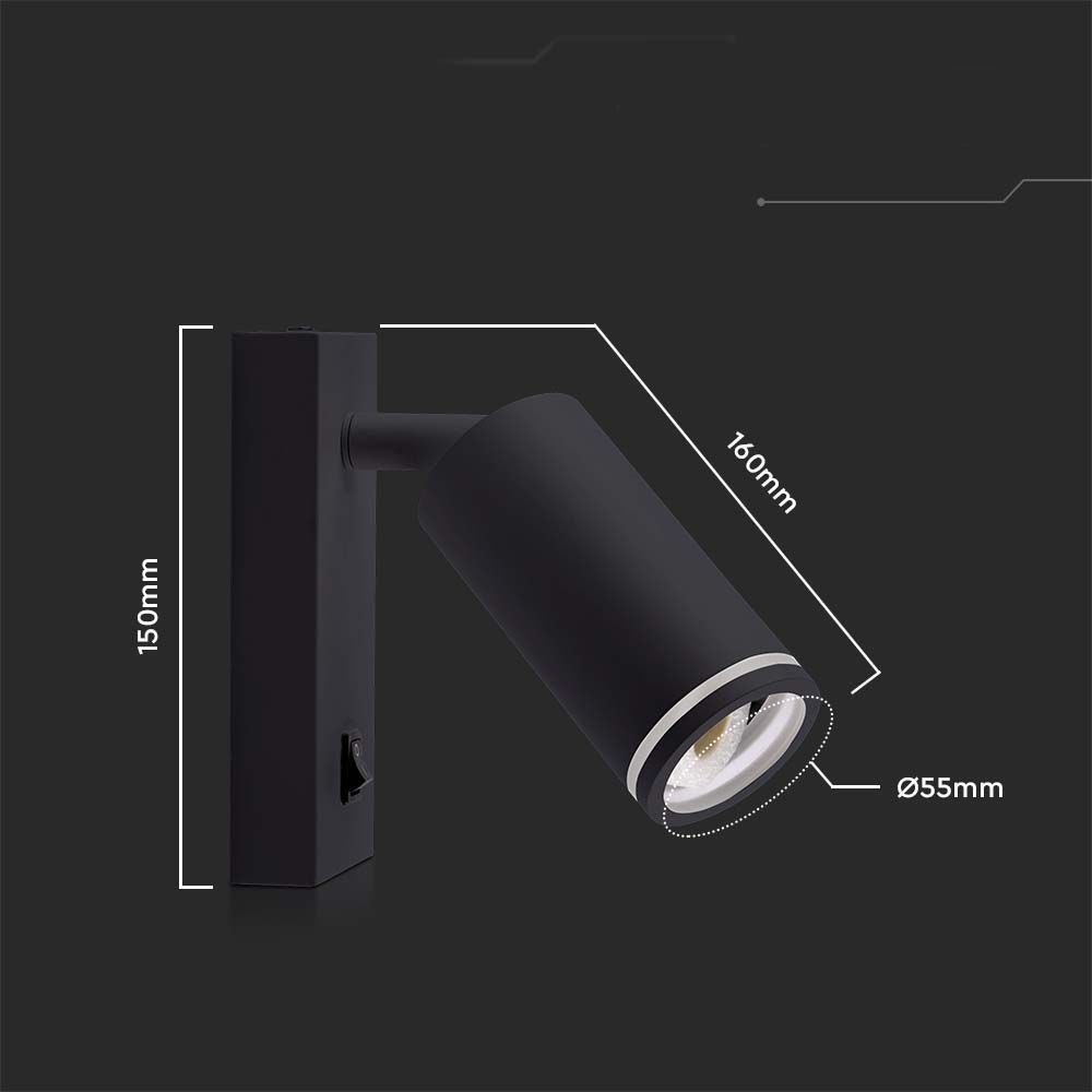 Kinkiet ścienny V-TAC GU10 aluminium czarny z włącznikiem VT-429 3 lata gwarancji