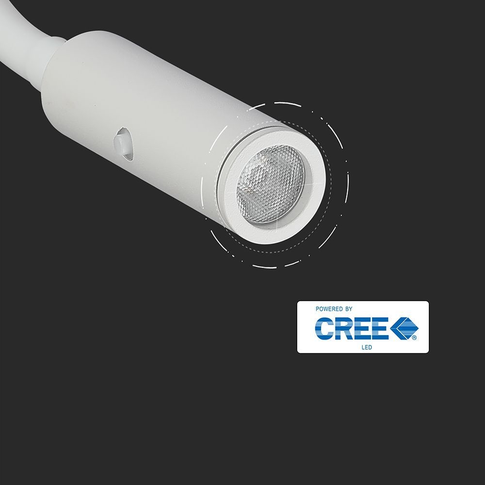 Oprawa LED V-TAC 3W kinkiet hotel łóżko włącznik biały COB CREE VT-2913 3000K 180lm 3 lata gwarancji
