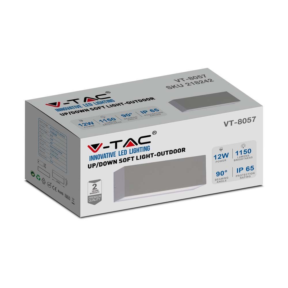 Oprawa ścienna V-TAC 12W LED góra dół szara IP65 VT-8057 3000K 1150lm
