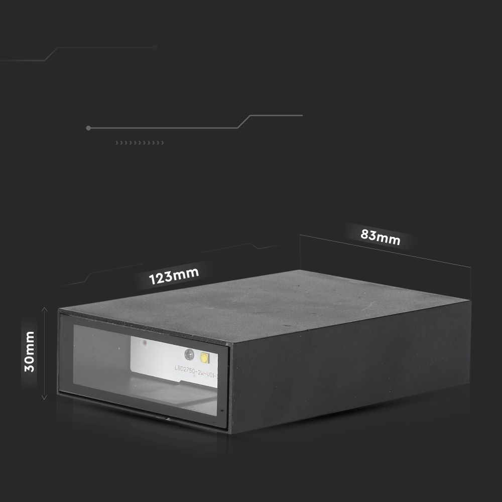 Oprawa kinkiet ścienny góra dół V-TAC 4W LED czarna IP65 VT-844-B-N 3000K 400lm