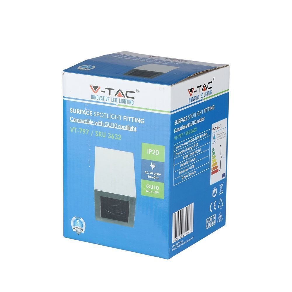 Oprawa V-TAC aluminiowa GU10 kostka kwadrat natynkowa satyna+czarny 142x100x100 VT-797-SN