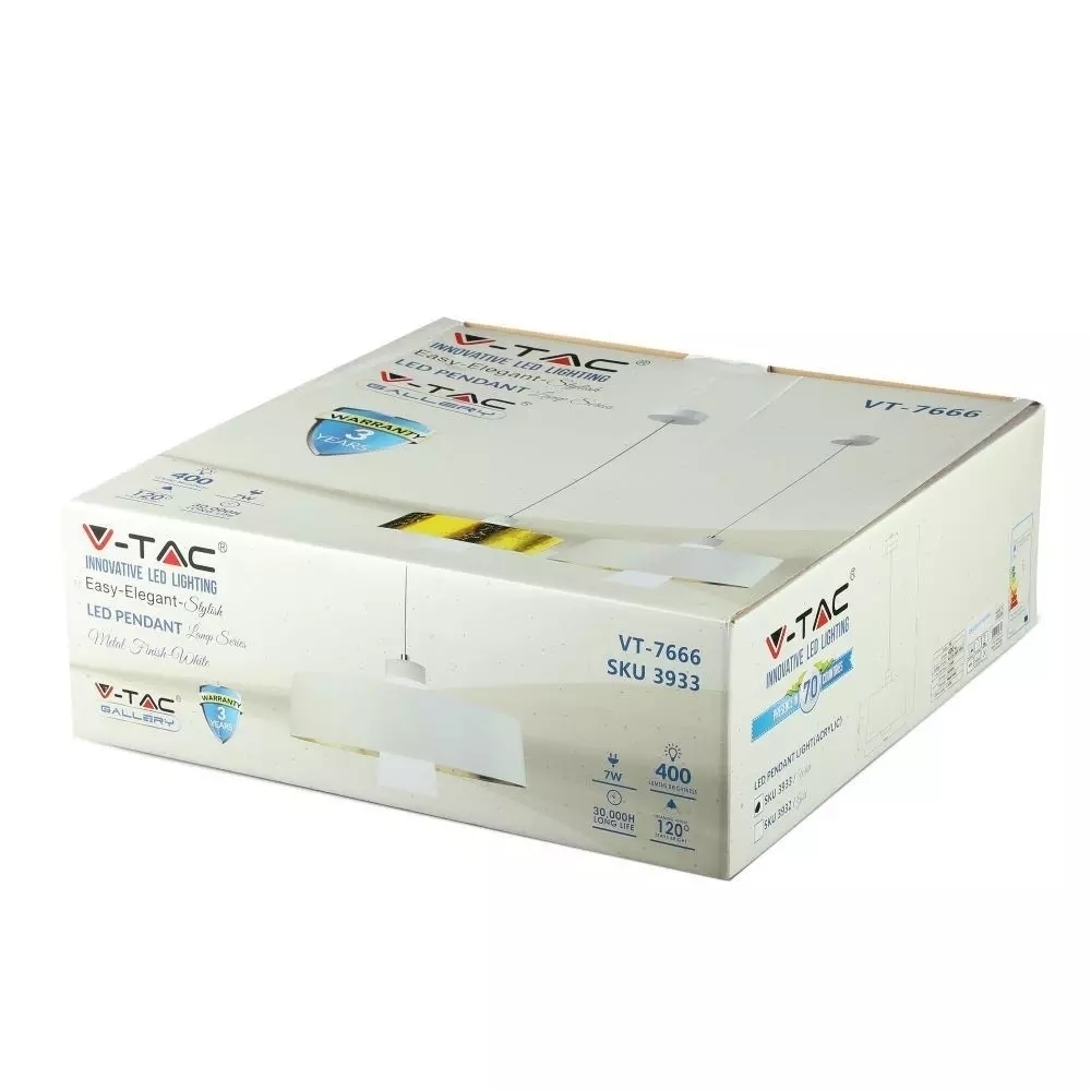 Oprawa zwieszana LED V-TAC 7W (akryl) biały 340x190mm VT-7666-WH 4000K 400lm 3 lata gwarancji