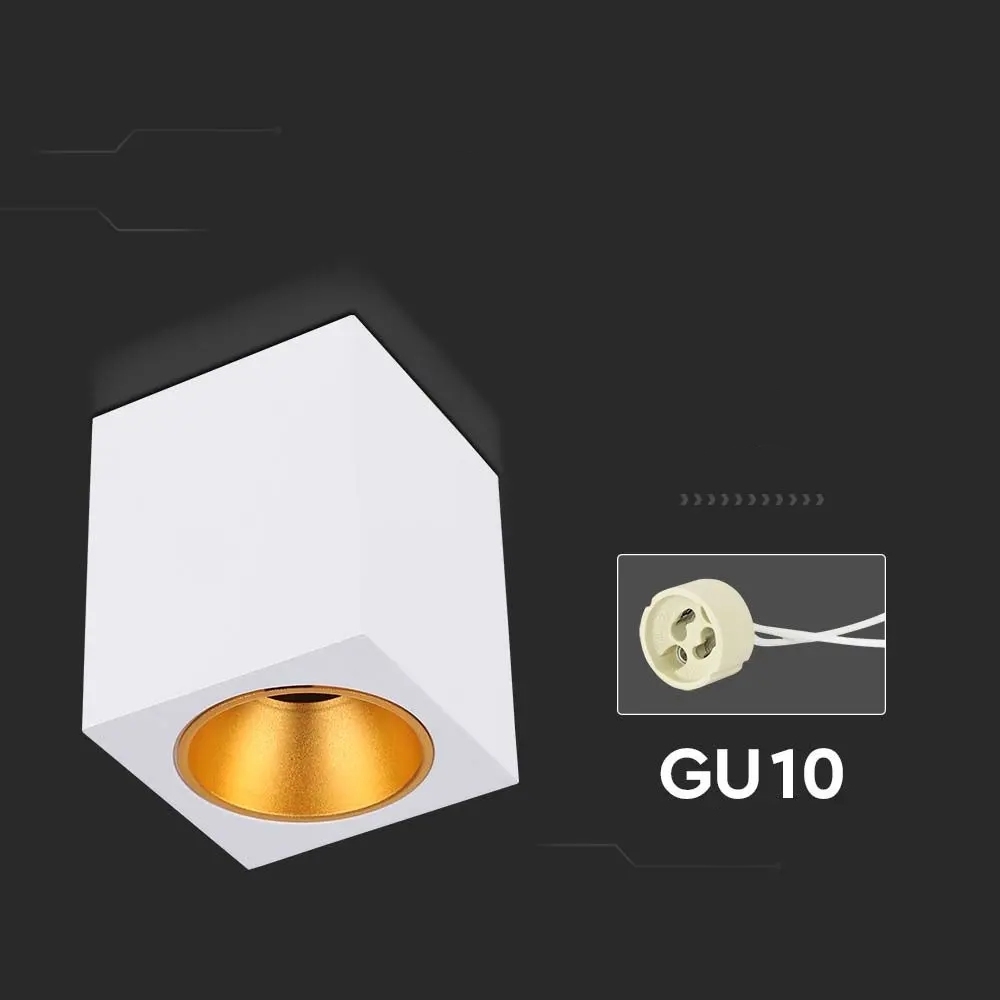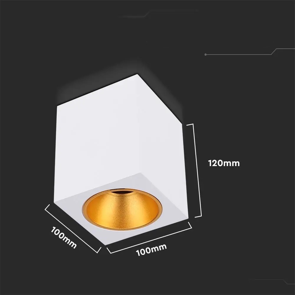 Oprawa V-TAC GU10 kwadratowa natynkowa biała+złoty 100x100x120cm VT-979SQ 3 lata gwarancji