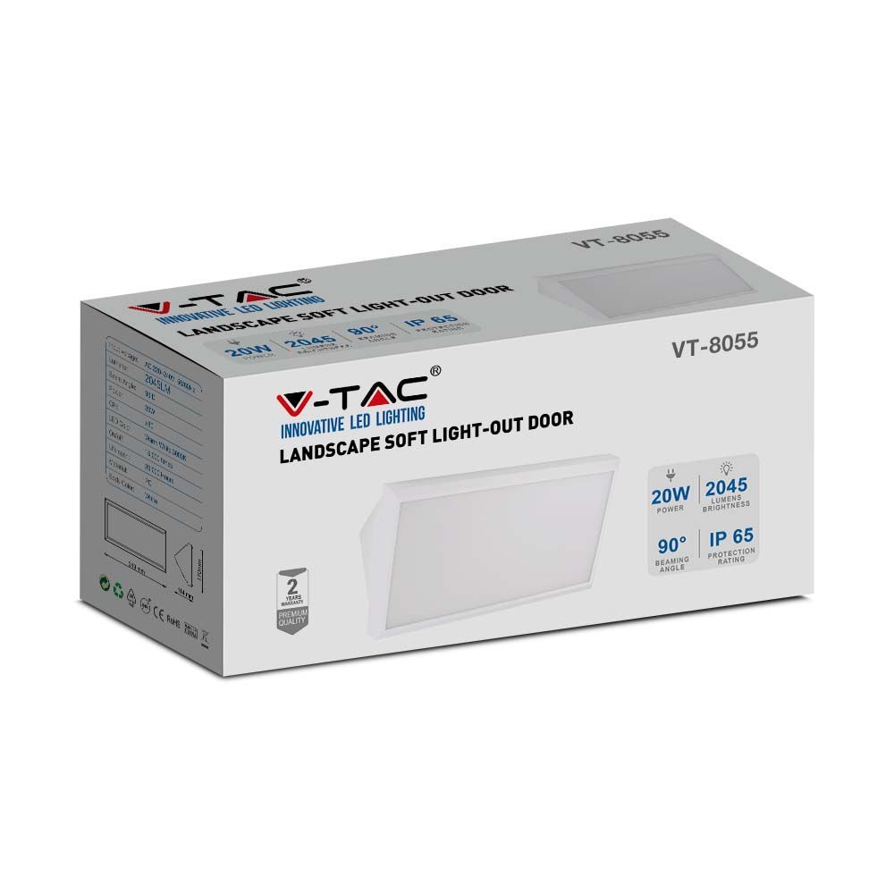 Oprawa ścienna V-TAC 20W LED ukośna biała IP65 VT-8055 4000K 2045lm
