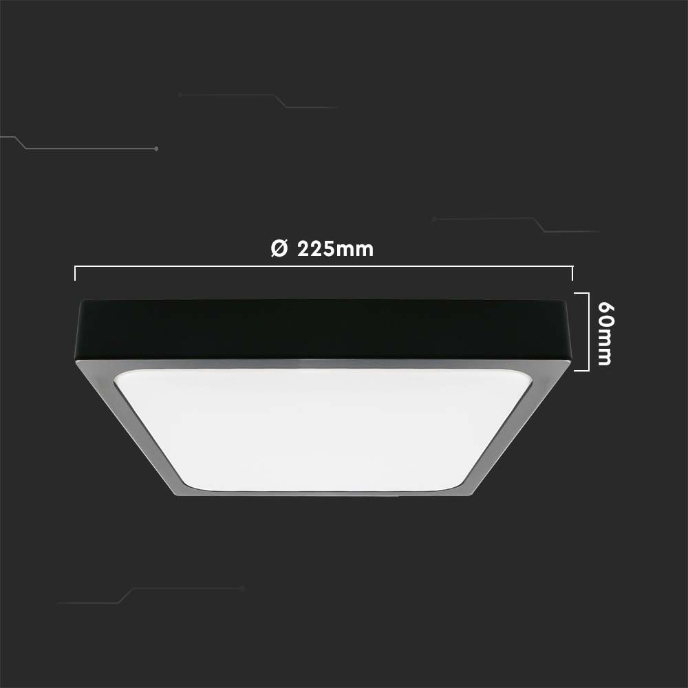 Oprawa sufitowa plafoniera V-TAC 18W LED kwadrat IP44 23x23cm czarny VT-8618B-SQ 4000K 1800lm