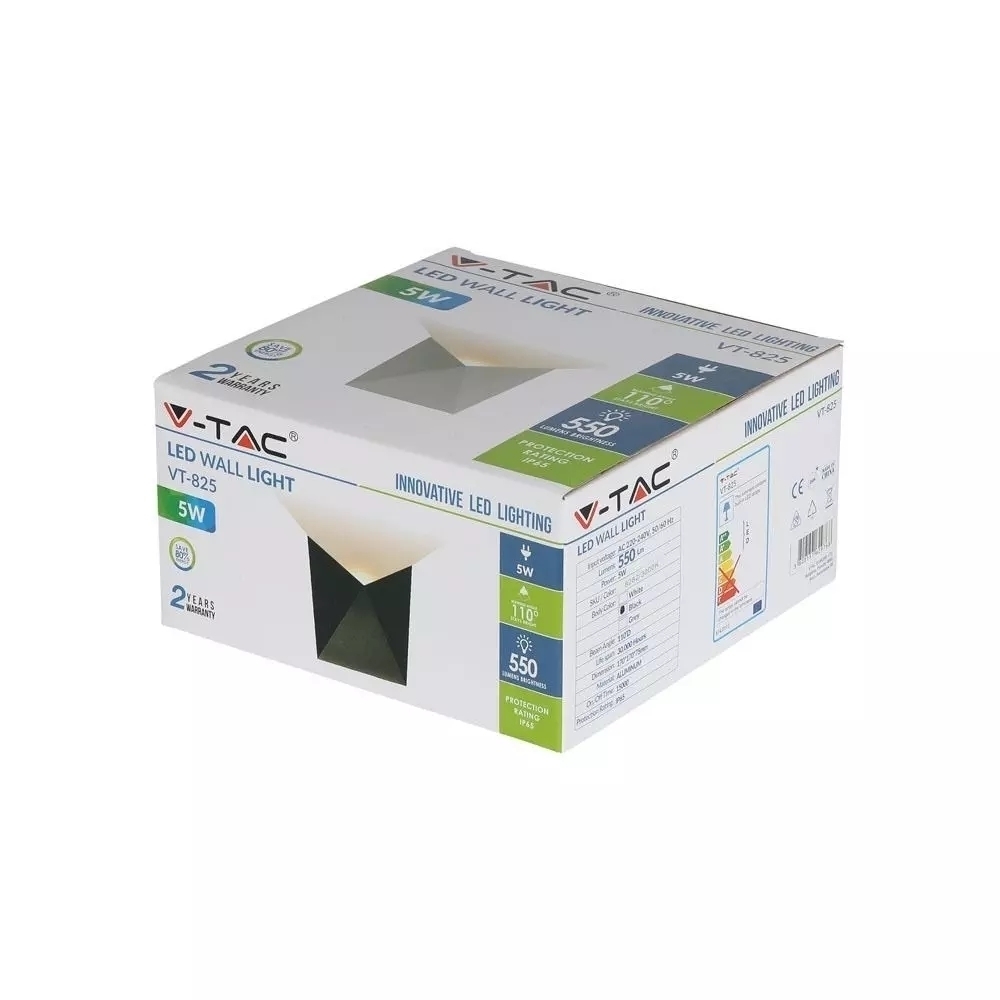 Kinkiet ścienny V-TAC 5W LED czarny IP65 VT-825 3000K 550lm