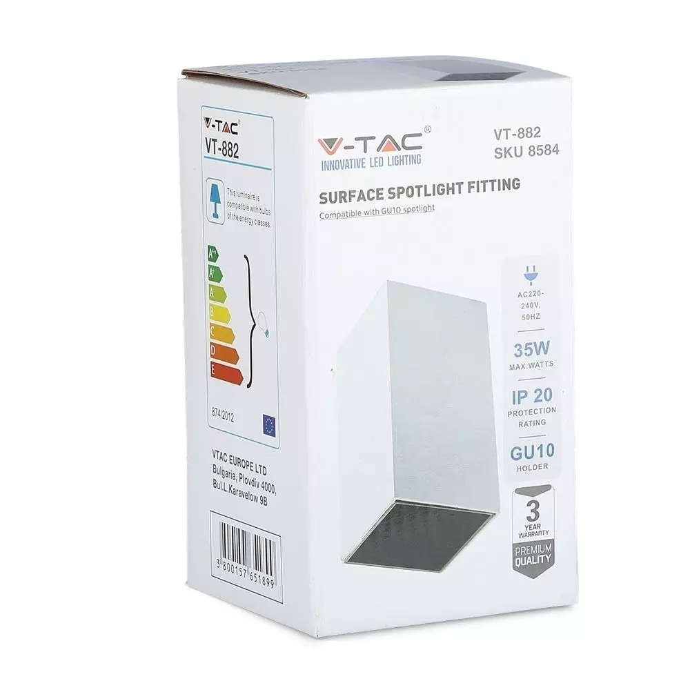 Oprawa sufitowa V-TAC GU10 kwadrat natynkowa biały+czarny 74x74x140mm VT-882-Q 3 lata gwarancji