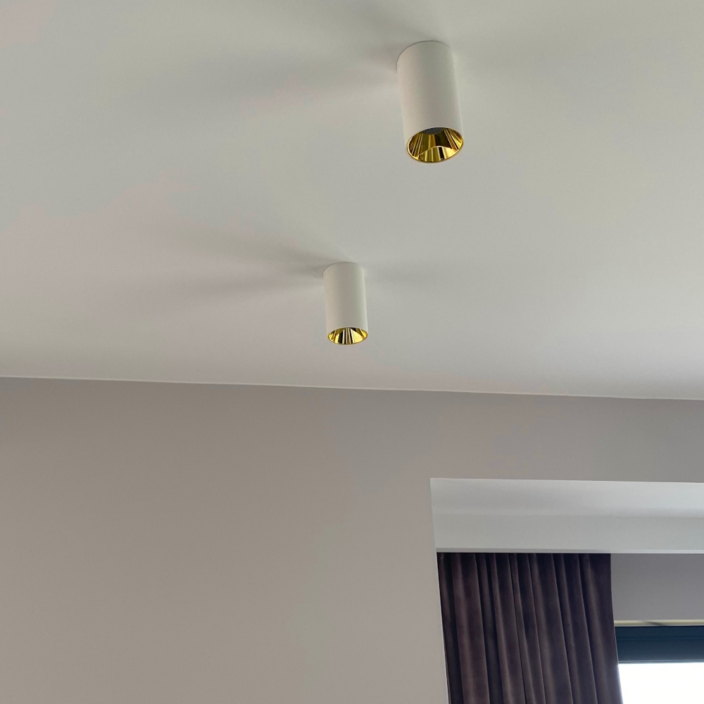 Oprawa sufitowa V-TAC GU10 okrągła natynkowa tuba biały+złoty 80x140mm VT-882-R 3 lata gwarancji