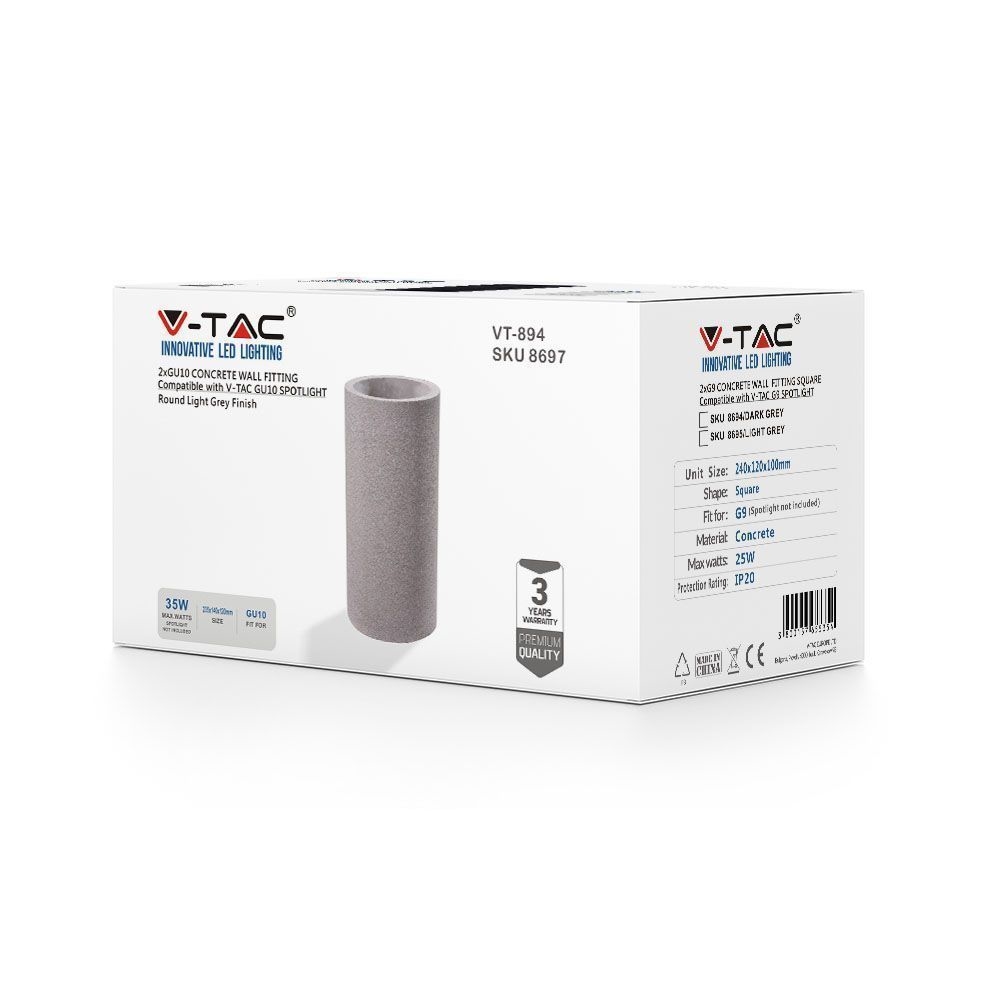 Kinkiet V-TAC beton 2xGU10 LED okrągły jasno szary IP20 VT-894