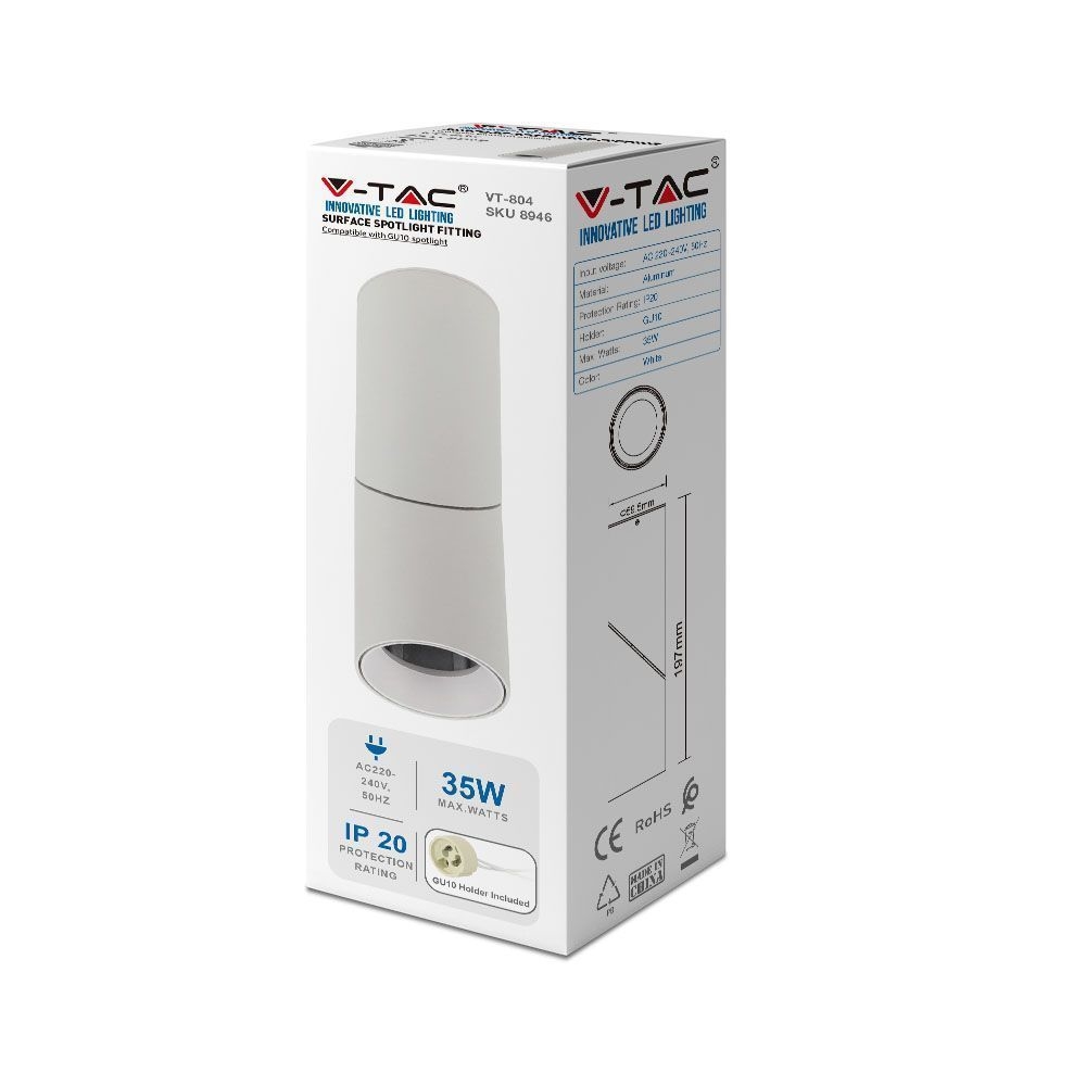 Oprawa V-TAC aluminiowa GU10 okrągła natynkowa tuba biała VT-804 3 lata gwarancji