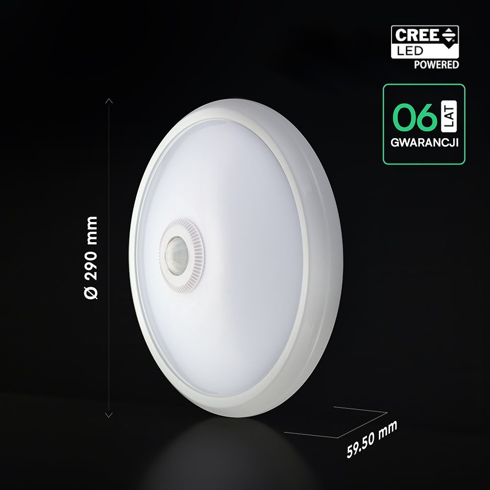 Plafon LED V-TAC CREE CHIP 12W czujnik ruchu VT-13 4000K 900lm 6 lat gwarancji