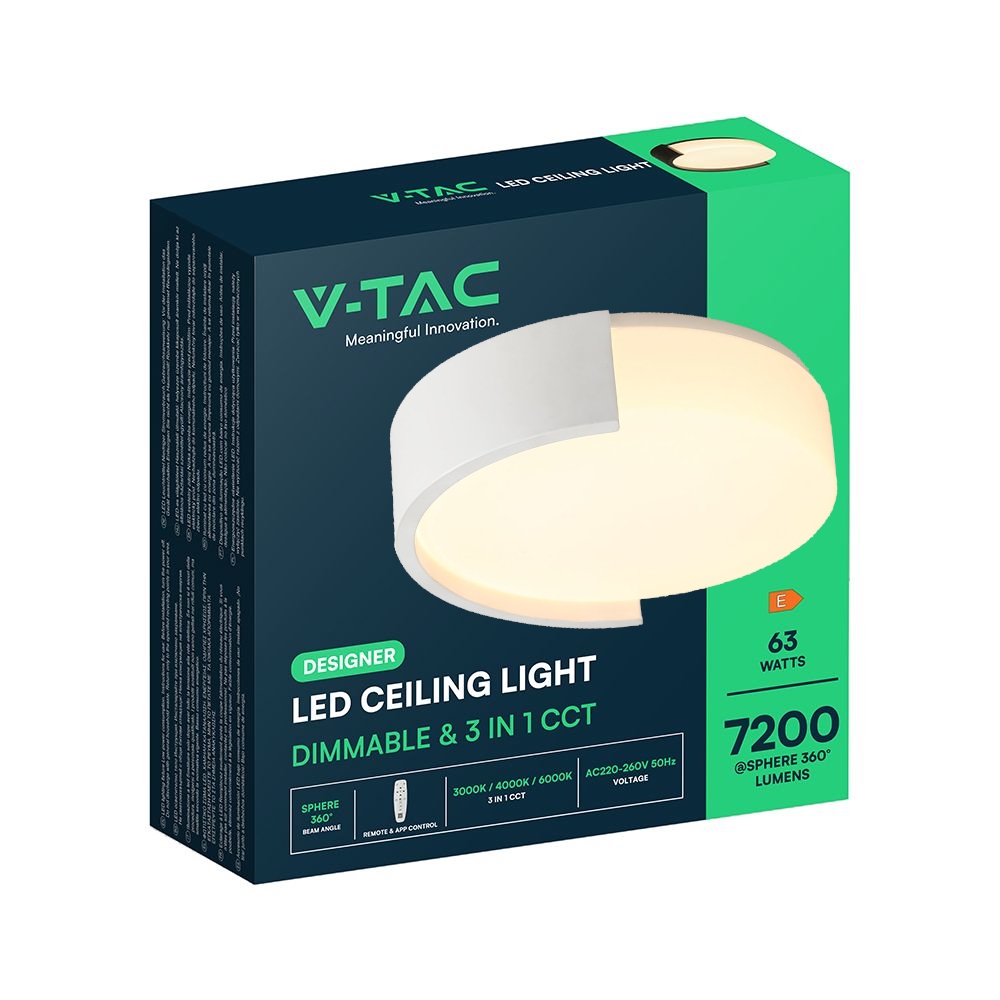 Oprawa sufitowa plafoniera V-TAC 63W LED 55cm 3w1 ściemnialna biała BT pilot CCT VT-84036 3000K-4000K-6000K 7200lm