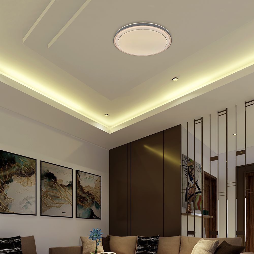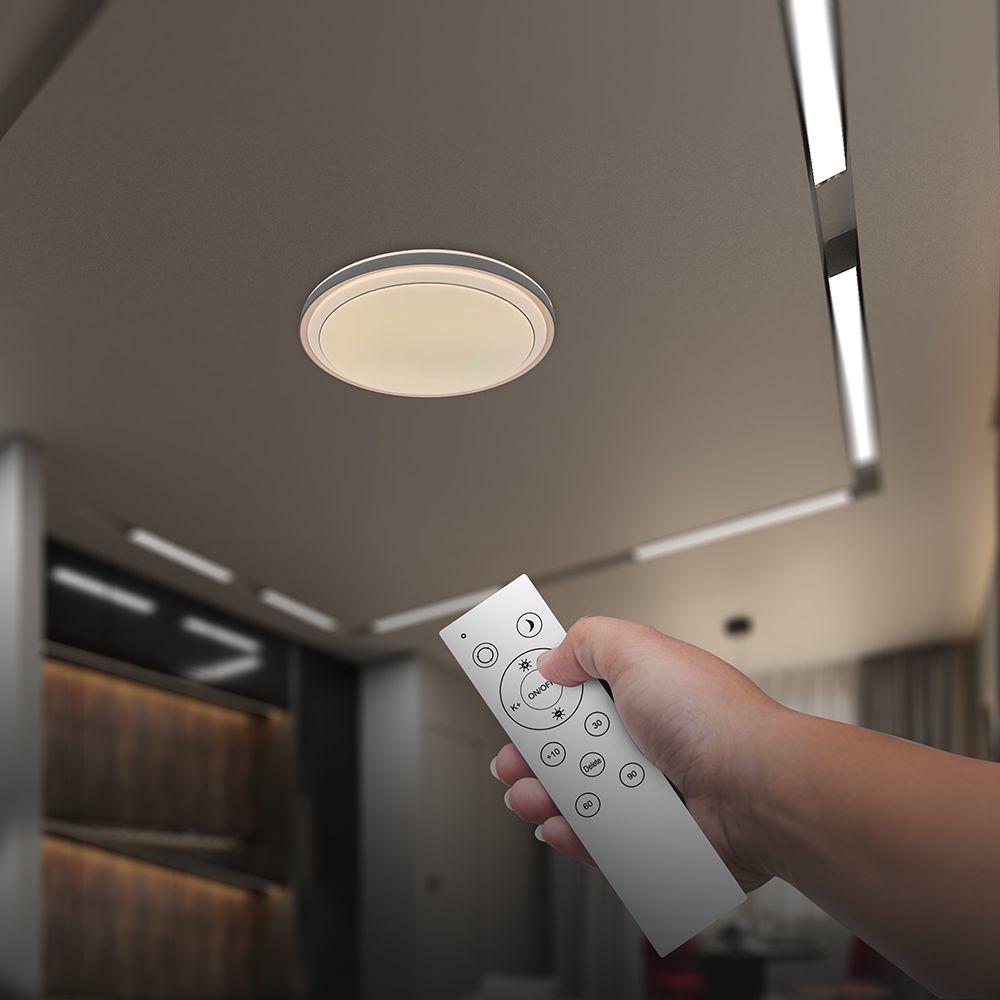 • Nowoczesna oprawa sufitowa LED V-TAC z funkcją zmiany barwy światła 3W1 sterowaną pilotem. Rozwiązanie pozwala w prosty sposób dopasować oświetlenie do różnych sytuacji, od jasnego światła roboczego po przyjemne światło do odpoczynku. Pilot umożliwia wygodne sterowanie funkcjami oświetlenia bez konieczności podchodzenia do włącznika.