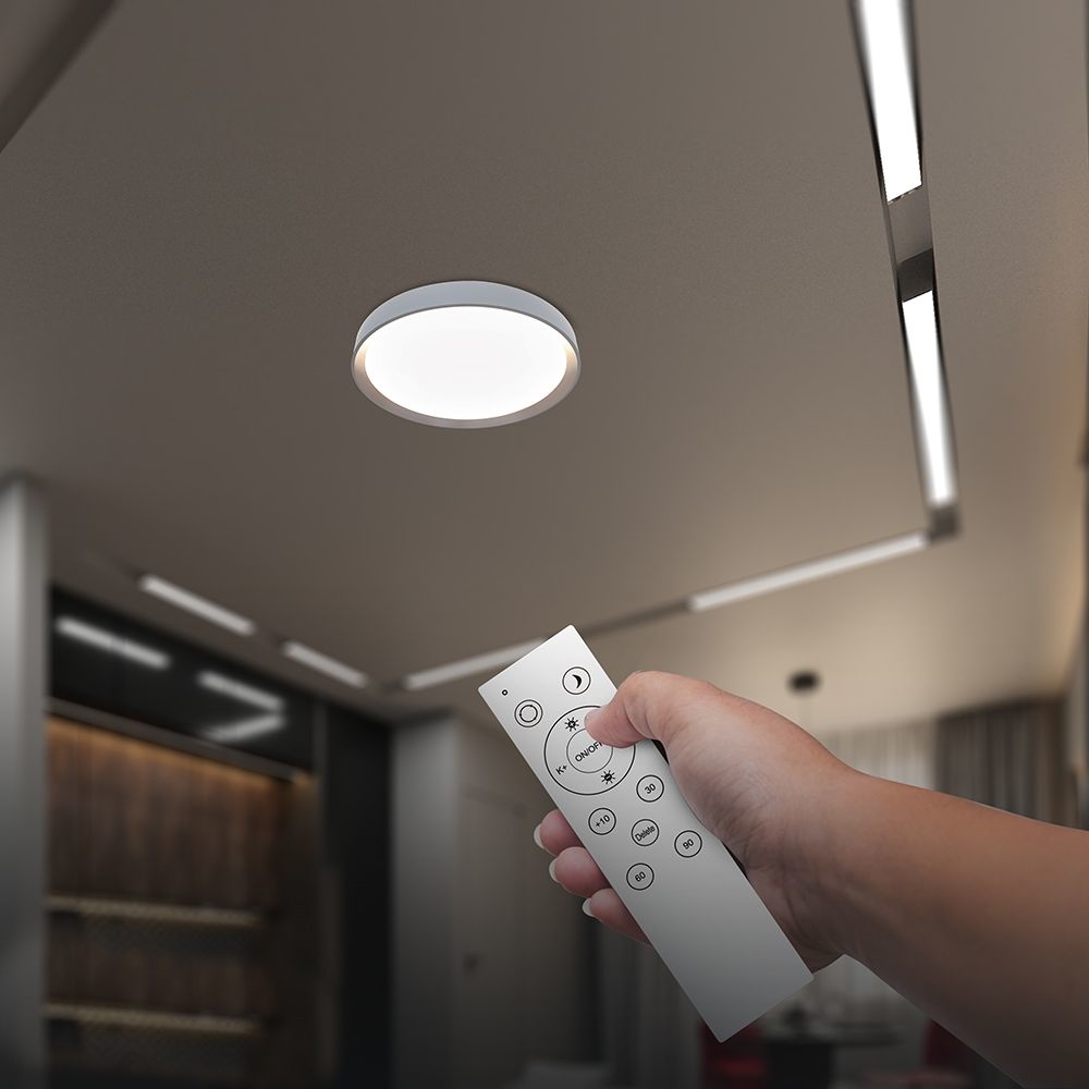 • Nowoczesna oprawa sufitowa LED V-TAC z funkcją zmiany barwy światła 3W1 sterowaną pilotem. Rozwiązanie pozwala w prosty sposób dopasować oświetlenie do różnych sytuacji, od jasnego światła roboczego po przyjemne światło do odpoczynku. Pilot umożliwia wygodne sterowanie funkcjami oświetlenia bez konieczności podchodzenia do włącznika.