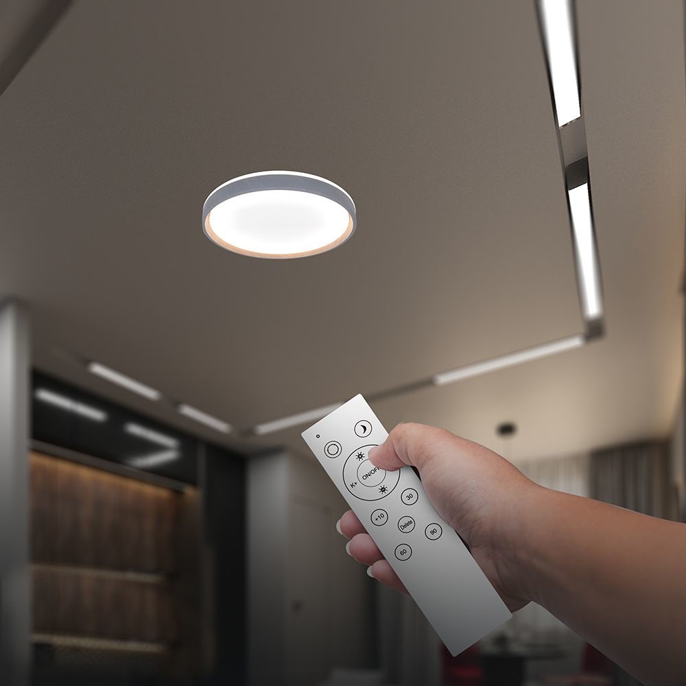Nowoczesny plafon LED 3w1 CCT z pilotem to uniwersalne rozwiązanie oświetleniowe, które umożliwia zmianę barwy światła w zakresie 3000K–6500K. Dzięki tej funkcji możesz łatwo dopasować oświetlenie do różnych sytuacji – od przytulnego światła ciepłego po jasne, chłodne oświetlenie do pracy.