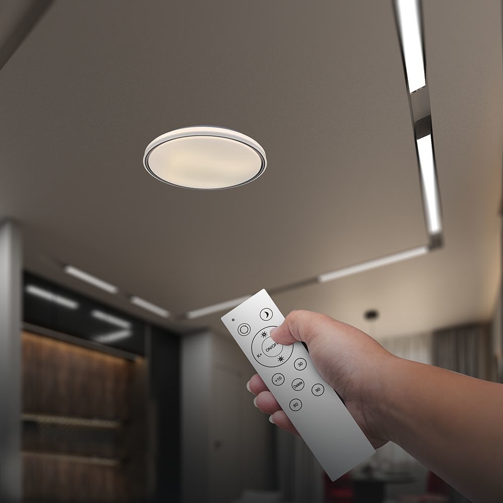 Sterowanie odbywa się za pomocą pilota, który umożliwia włączanie i wyłączanie światła, zmianę temperatury barwowej oraz płynną regulację jasności. Dodatkowe funkcje, takie jak tryb nocny oraz timer, zwiększają komfort codziennego użytkowania i pozwalają dostosować oświetlenie do rytmu dnia.