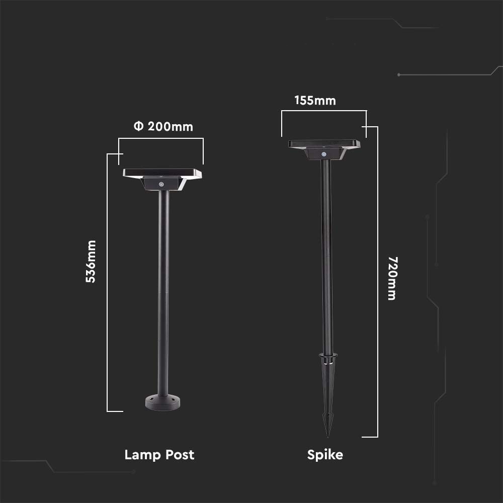 Słupek ogrodowy solarny V-TAC 2-funkcje IP65 53cm czarny VT-4102 3000K-6400K 220lm 3 lata gwarancji