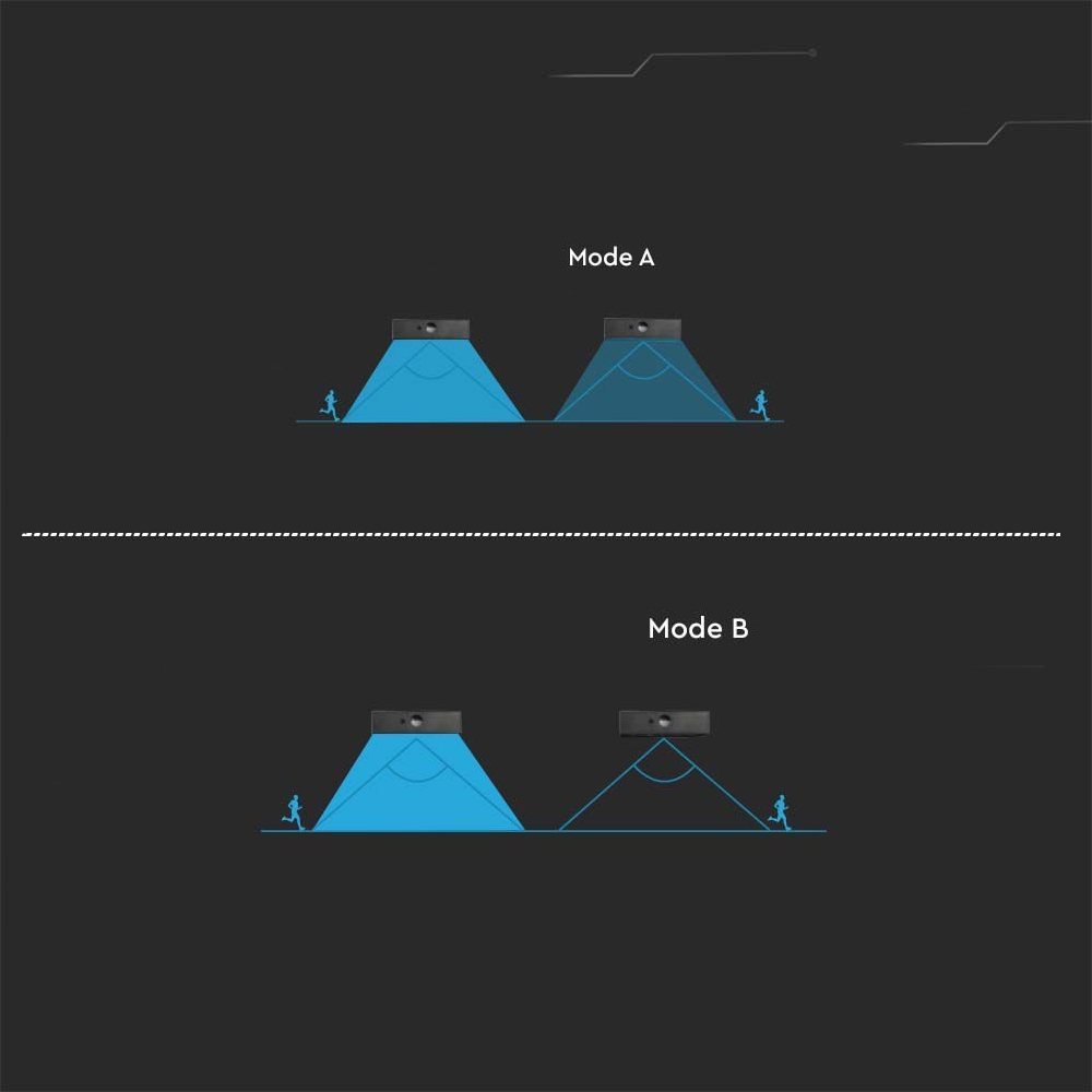 • - Tryb czujnika - lampa automatycznie uruchamia się w nocy i włącza pełną jasność po wykryciu ruchu, a następnie przyciemnia do 5% jasności po 20 sekundach braku ruchu