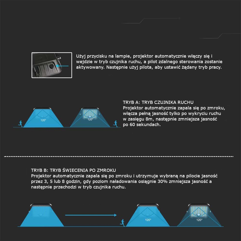 - Wbudowany czujnik PIR uruchamia oprawę po wykryciu ruchu
