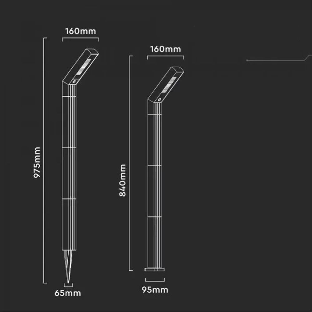 - Nowoczesna lampa solarna LED V-TAC 2 w 1, przystosowana do montażu na podstawie lub za pomocą grotu ziemnego