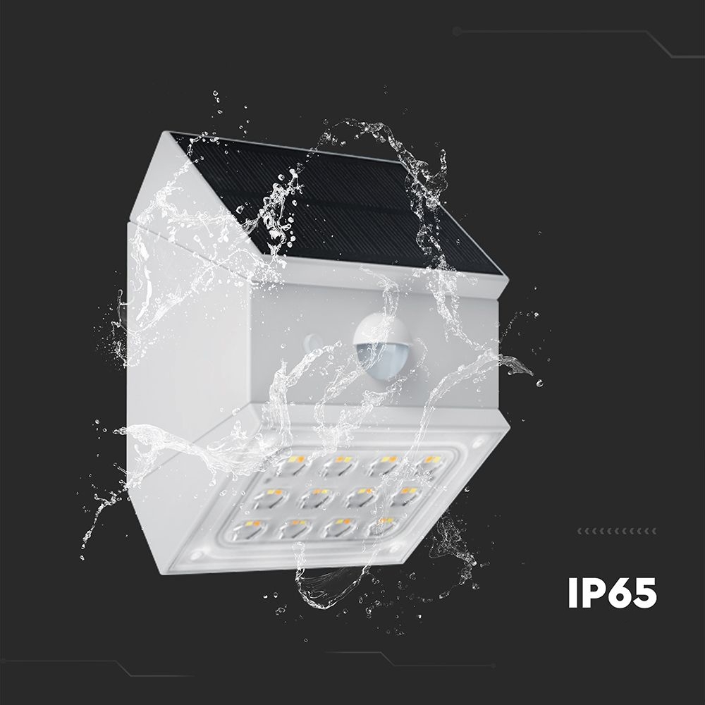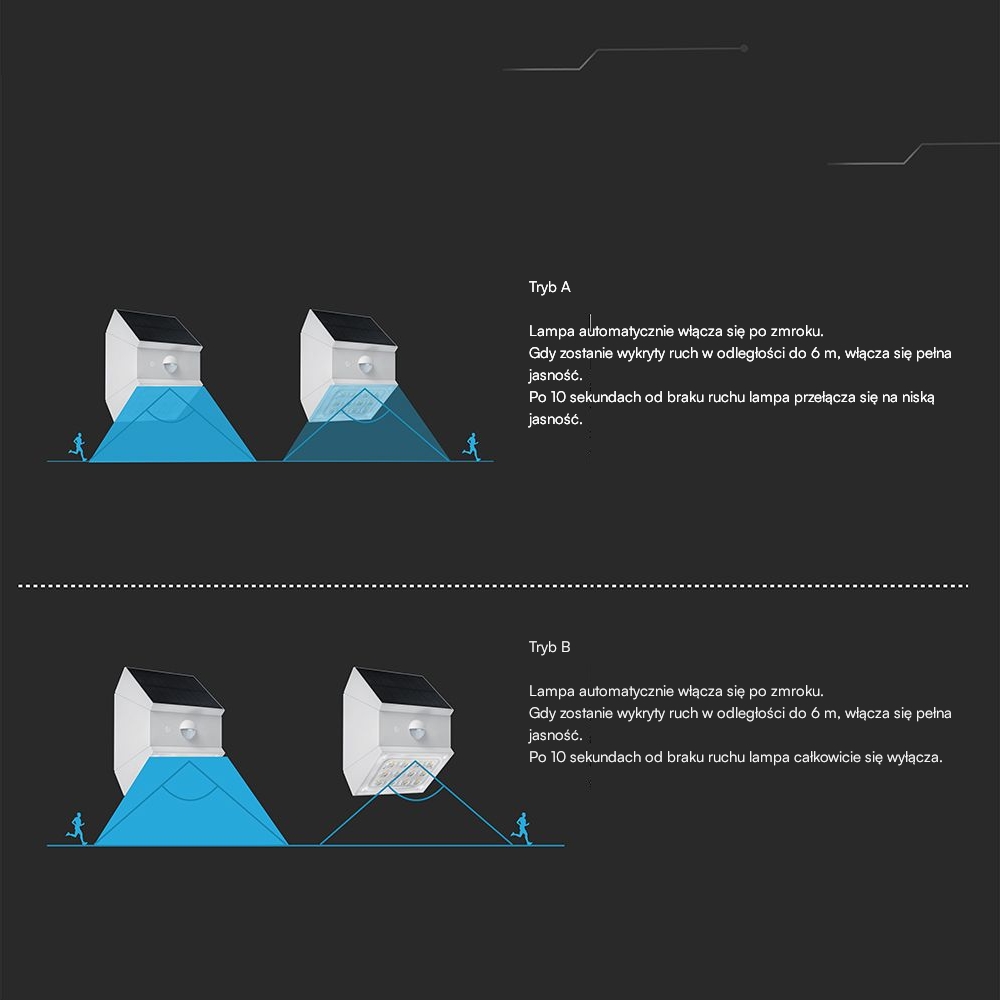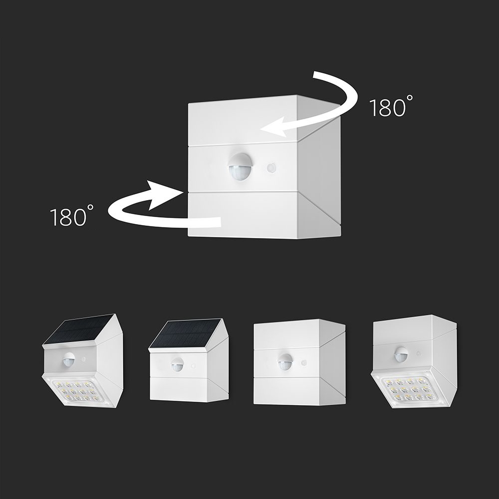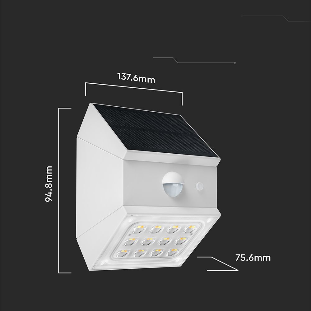 Kinkiet ogrodowy ścienny solarny V-TAC 2,5W CCT czujnik ruchu biały VT-11025CCT-W 3000K-4000K-6000K 300lm 3 lata gwarancji