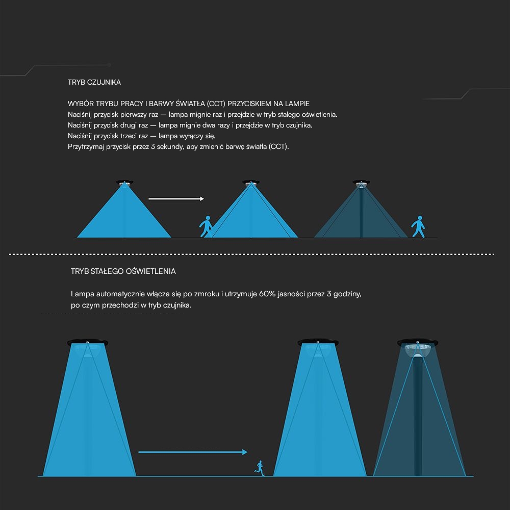 Oprawa ogrodowa V-TAC solarna 15W czujnik ruchu timer pilot CCT IP65 VT-12014CCT 3000K-4000K-6000K 2200lm 3 Lata gwarancji