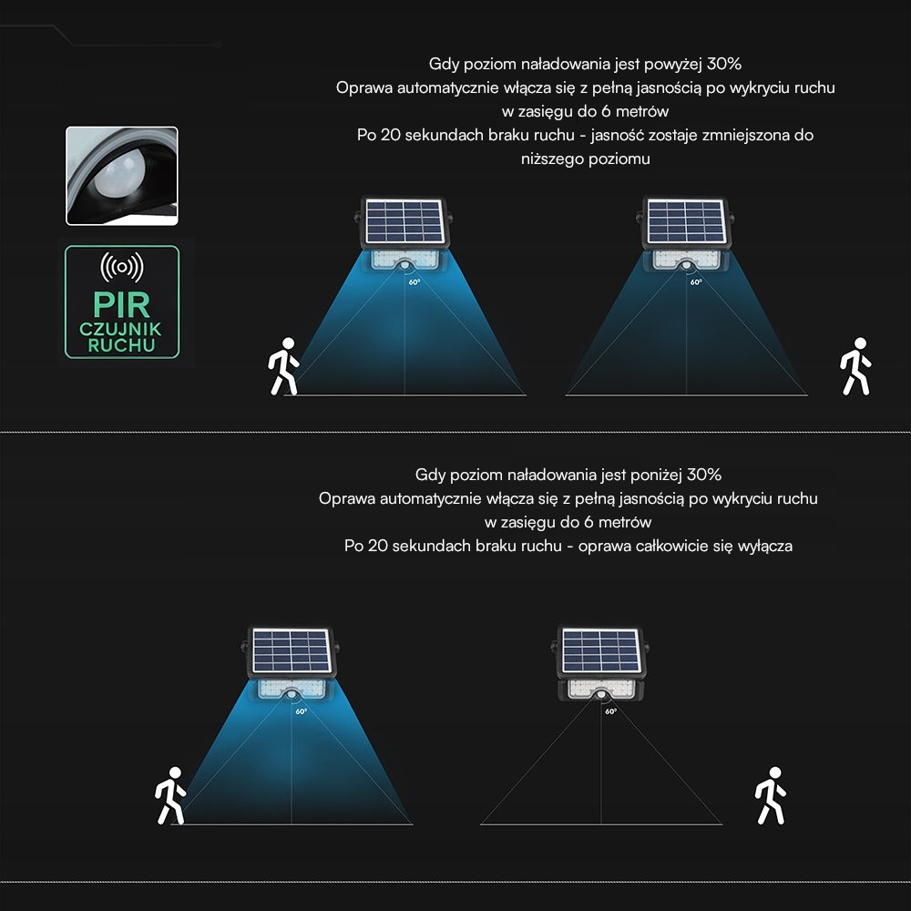 Lampa solarna LED V-TAC z wbudowanym panelem fotowoltaicznym i czujnikiem ruchu przeznaczona do oświetlenia przestrzeni zewnętrznych bez konieczności podłączenia do sieci elektrycznej