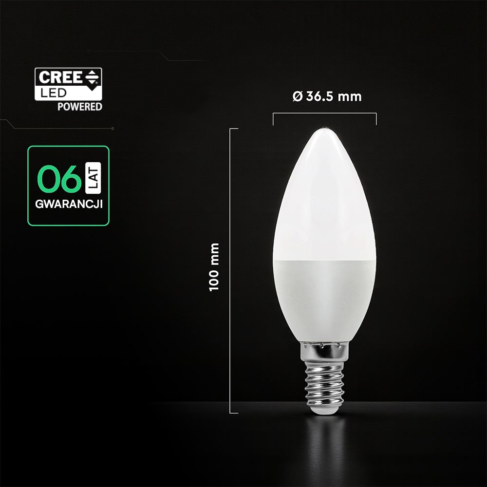 Żarówka LED V-TAC CREE CHIP 6,5W E14 świeca VT-268 3000K 600lm 6 lat gwarancji