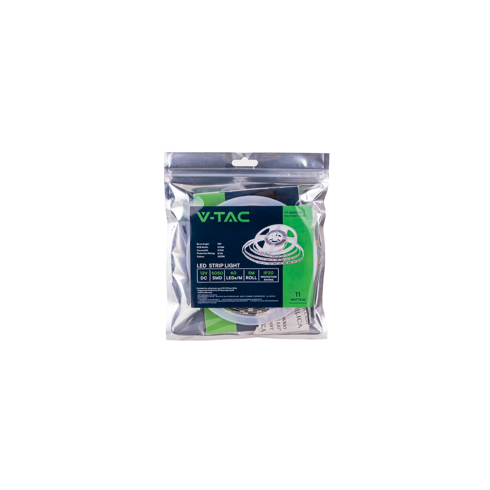 Taśma LED V-TAC 12V SMD5050 300LED IP20 11W/m VT-5050 60-IP65 2200K