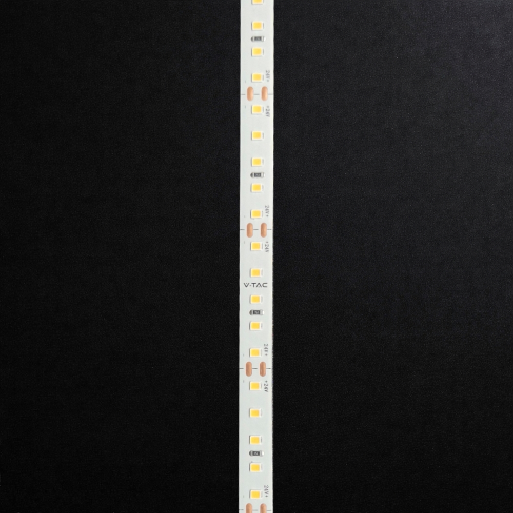 Profesjonalna taśma LED V-TAC oparta na diodach SMD2835 zapewniających wysoką niezawodność, równomierne światło oraz długi czas życia. Dzięki gęstości 120 diod LED na metr taśma zapewnia jednolitą linię światła bez widocznych przerw między punktami świetlnymi, co sprawdza się szczególnie w nowoczesnych instalacjach dekoracyjnych i architektonicznych.