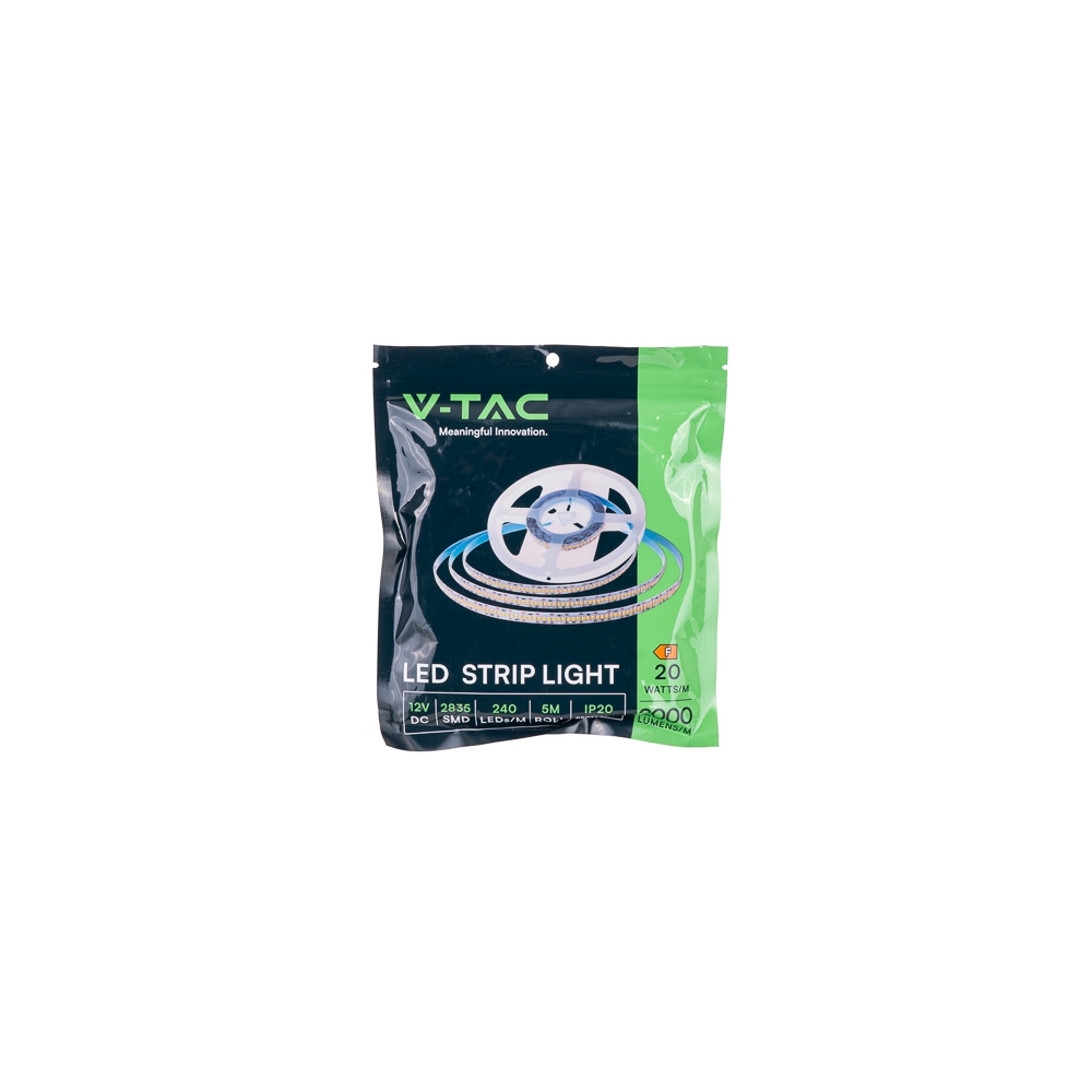 Taśma LED V-TAC 12V SMD2835 1200LED high lumen IP20 20W/m VT-2835 240-H-N 4000K 2000lm