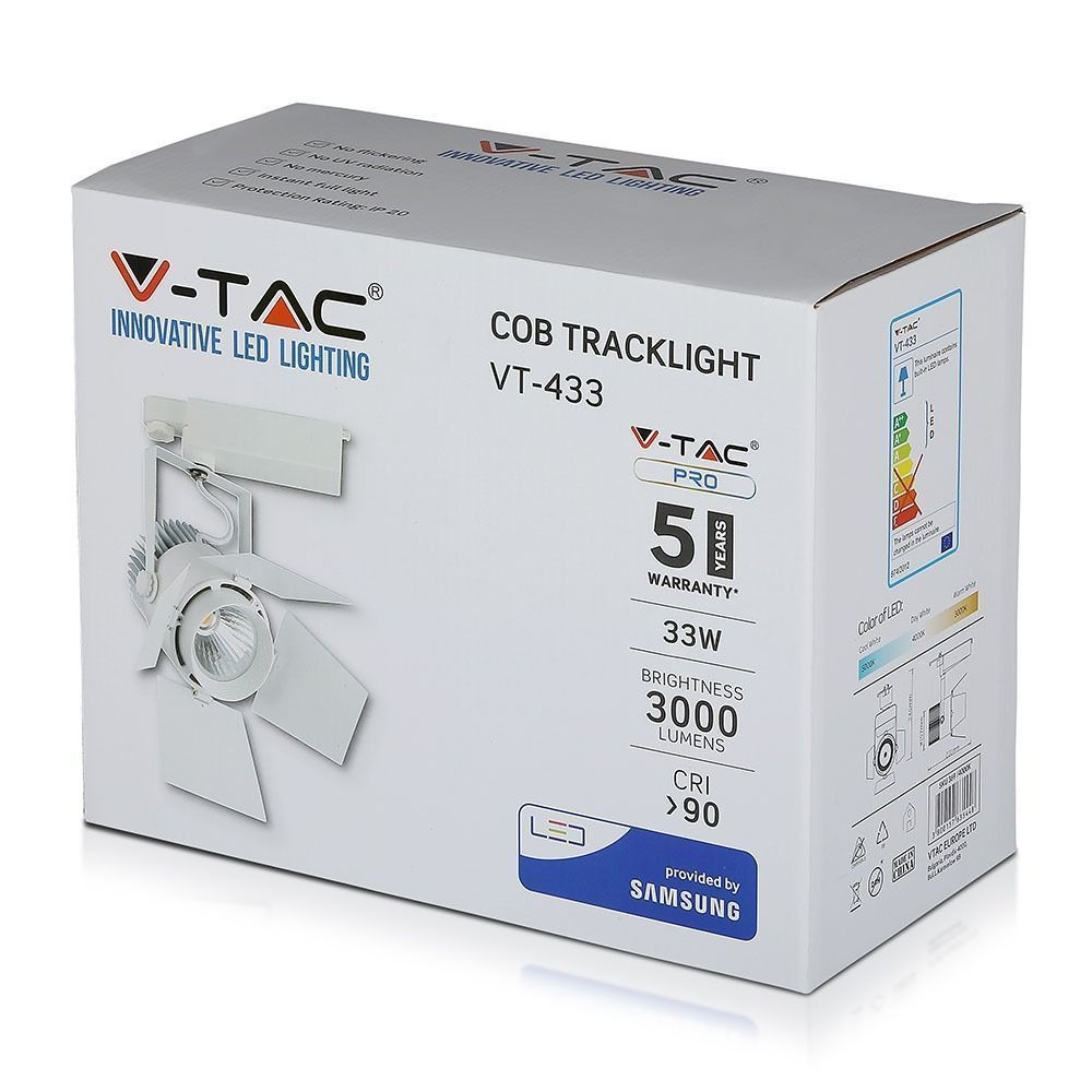 Oprawa 33W LED V-TAC szynosystem 3F SAMSUNG CHIP CRI90+biała VT-433-W 5000K 2640lm 5 lat gwarancji