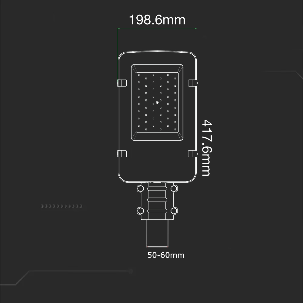 - Otwór montażowy oprawy przystosowany do wysięgników o średnicy 50-60mm