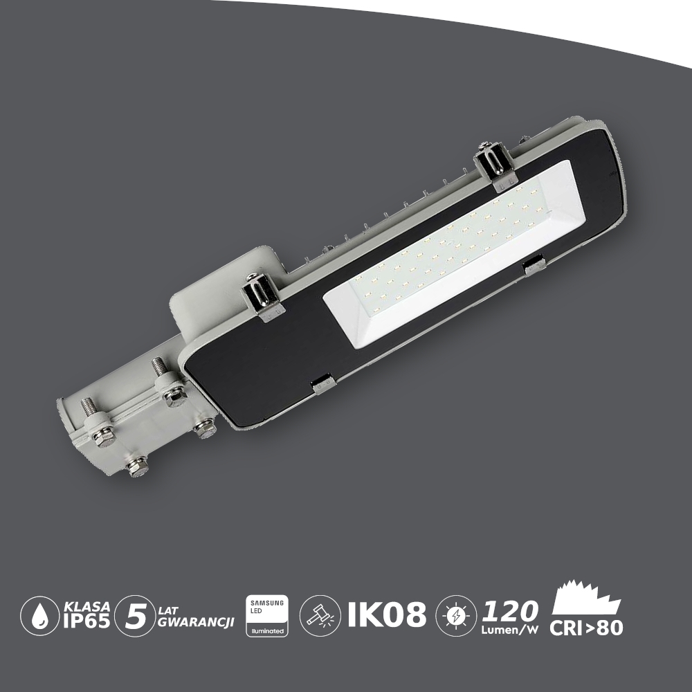 Oprawa uliczna LED V-TAC SAMSUNG CHIP 30W szara VT-30ST 4000K 3600lm 5 lat gwarancji