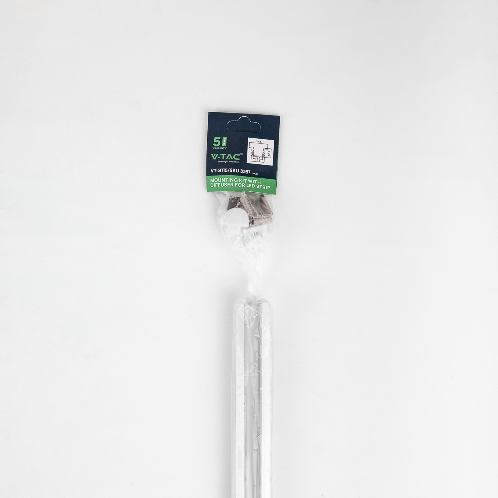W zestawie, profil 2 metry, zaślepki końcowe, uchwyty montażowe oraz klosz mleczny