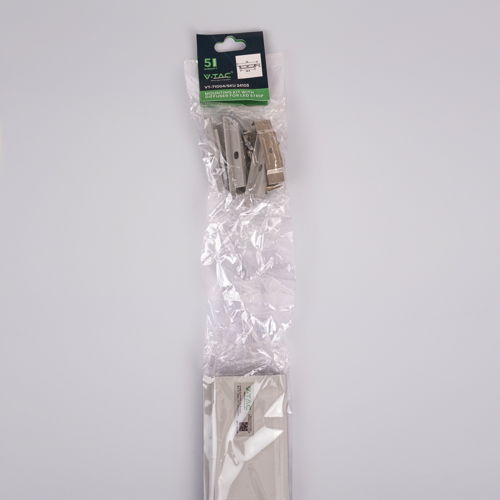 Profil do LED zestaw, ALU anodowany wpuszczany V-TAC 2mb klosz mleczny 49,8x9.8mm VT-71004 5 lat gwarancji