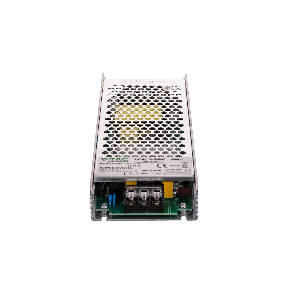 Zasilacz LED V-TAC 360W 12V 30A IP20 modułowy bez wentylatora VT-21360