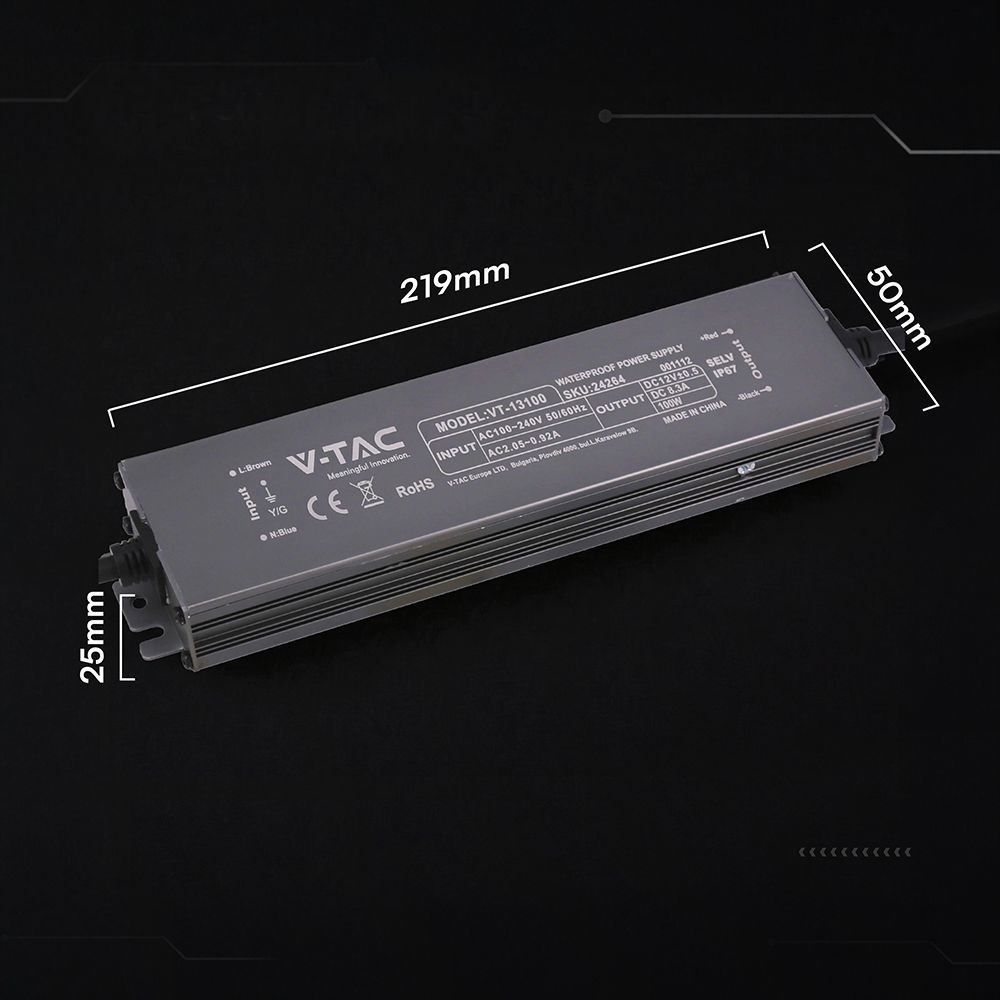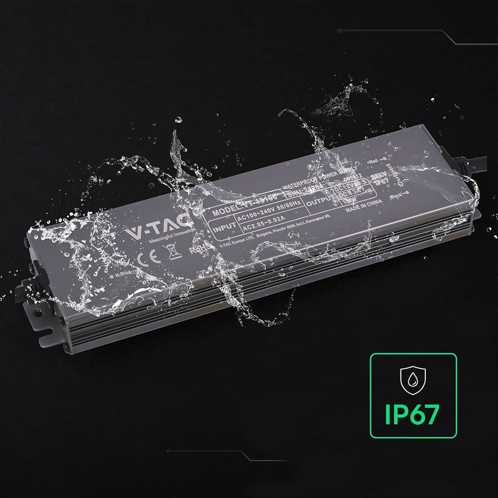 Zasilacz do LED hermetyczny SLIM V-TAC 100W 12V 8.3A IP67 filtr EMI VT-13100